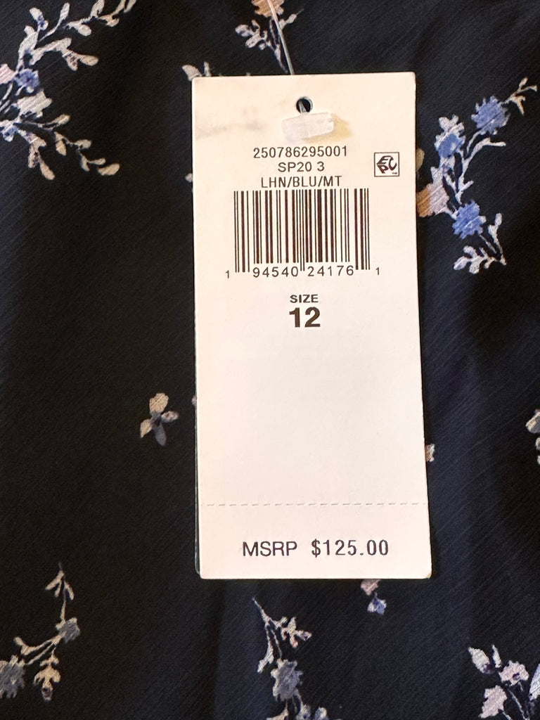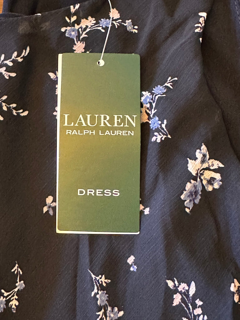 Lauren Ralph Lauren Navy Floral Flutter Dress Size 12 NEW MSRP 125