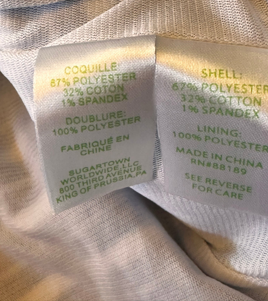 This preloved Lilly Pulitzer Briana dress in size XSmall features a flattering A-line silhouette with a blue striped pattern. Crafted from a comfortable poly-cotton-spandex knit blend, it offers a soft stretch for ease of movement. With a chest measurement of 30", waist 28", and length 34", this lined dress combines style and comfort, making it a versatile addition to your wardrobe.