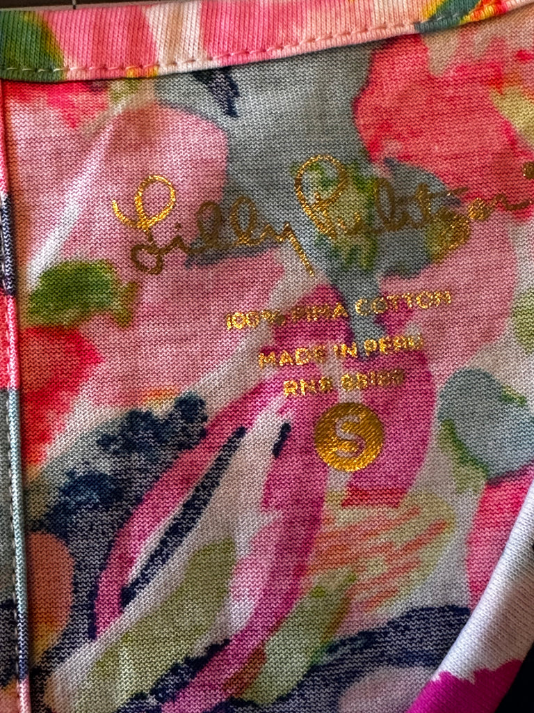 Crafted from 100% premium Pima cotton, this Lilly Pulitzer Pina Colada long sleeve dress offers exceptional softness and durability. Designed for a small fit with a 36" chest, 19" sleeve, 32" waist, and 35" length, it provides a flattering silhouette and comfortable wear. Ideal for those seeking a stylish, breathable dress with lasting quality.
