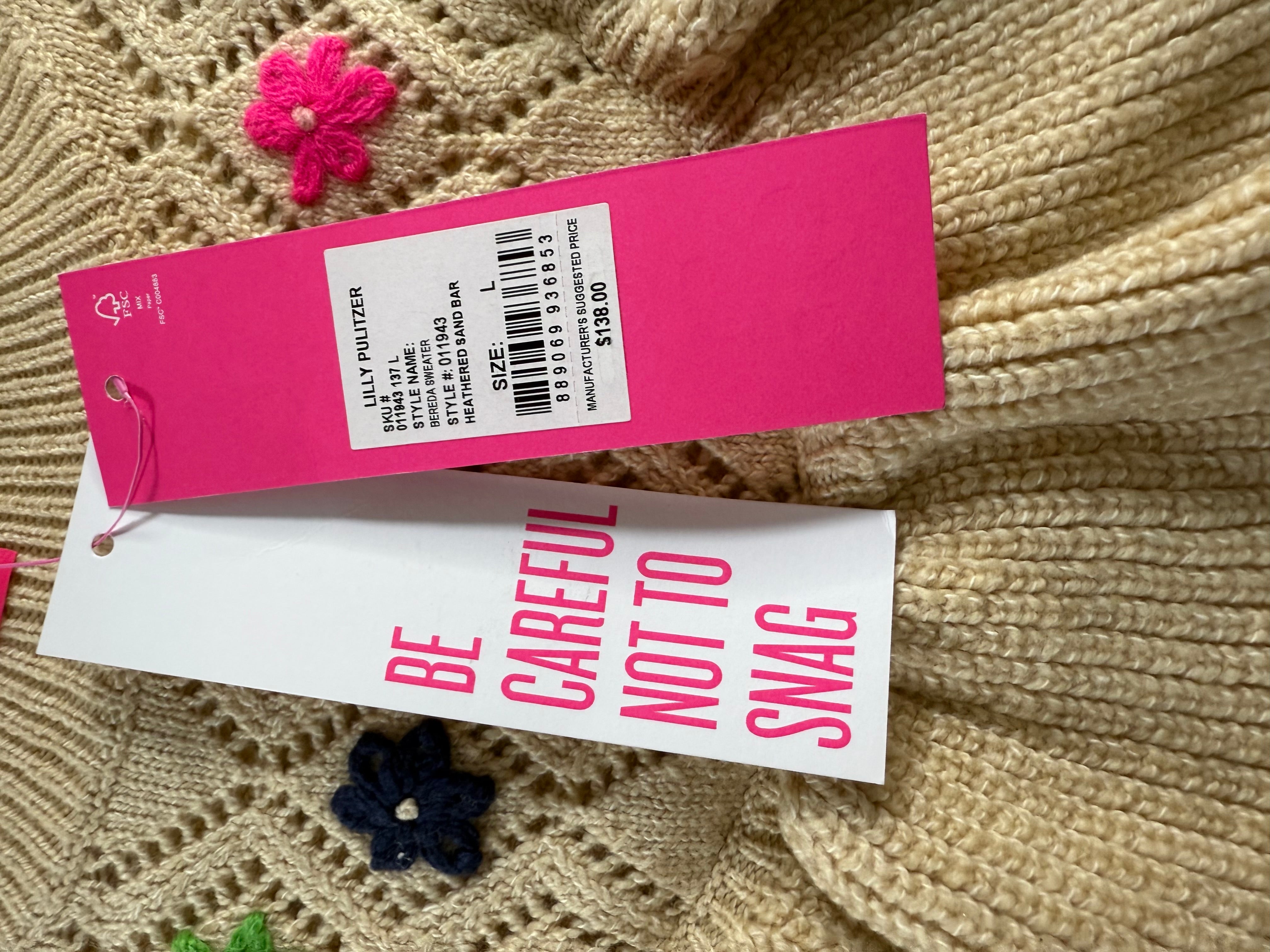 Lilly Pulitzer Bereda Knit Womens Sweater Heathered Sandbar Large NEW MSRP138
