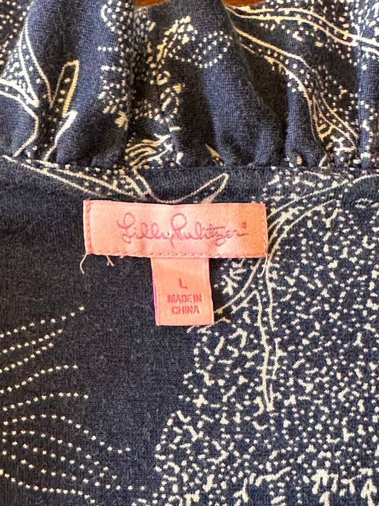 Lilly Pulitzer Silk Blend Blaney Navy Blue Preloved Dress Size Large*