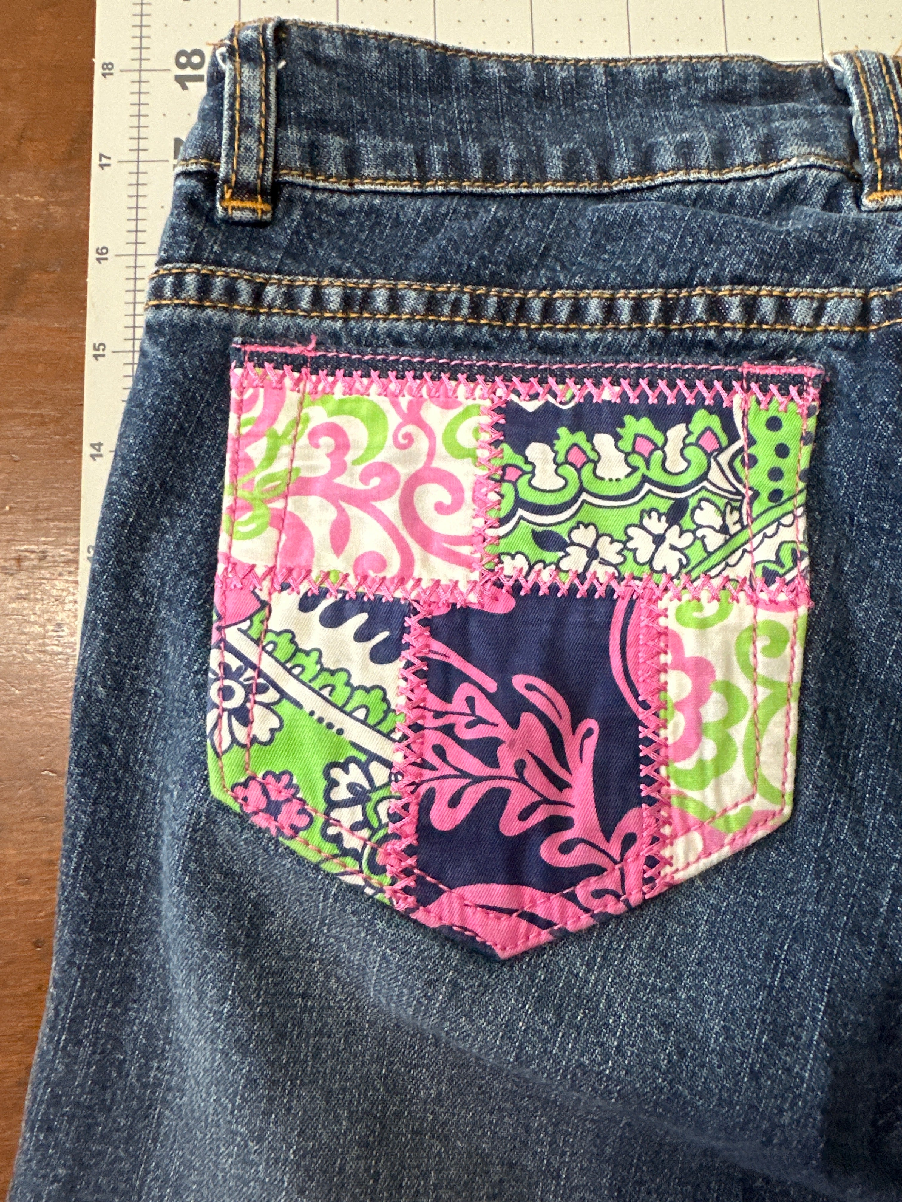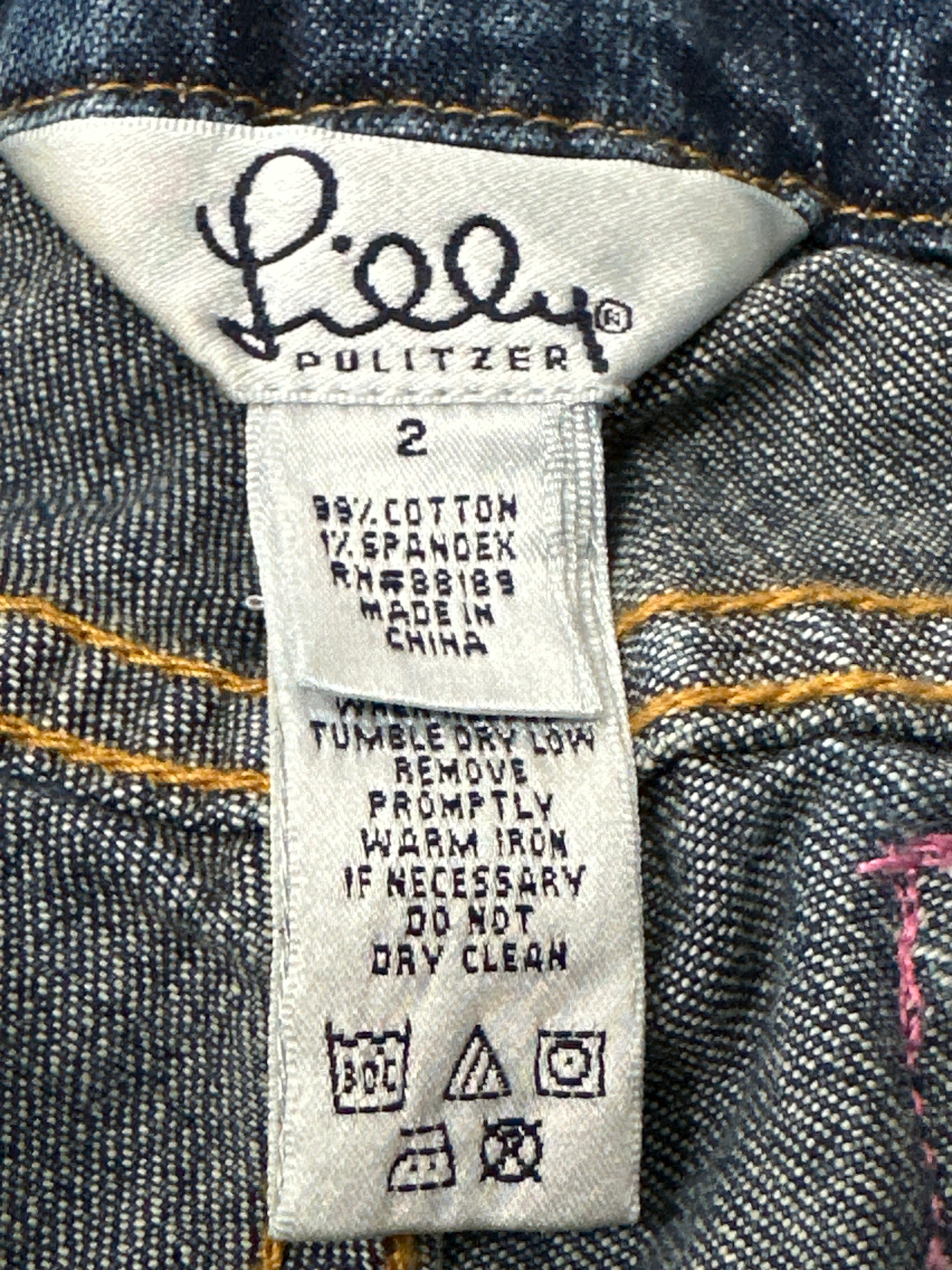 Lilly Pulitzer Vintage Denim Embroidered Pockets Flare Jeans Size 26x29*