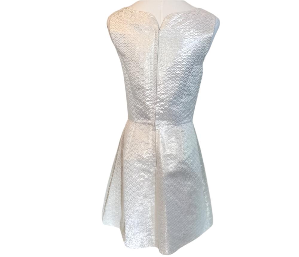Elevate your style with the Lilly Pulitzer Wythe Cameo Metallic Dress. Made from a cotton/poly blend with a subtle shimmer, this dress adds a touch of glamour to any occasion. With a flattering lined silhouette, you'll feel confident and comfortable all day long. Make a statement in this sophisticated dress. Measurements: Chest 32", Waist 28", Length 33". *
