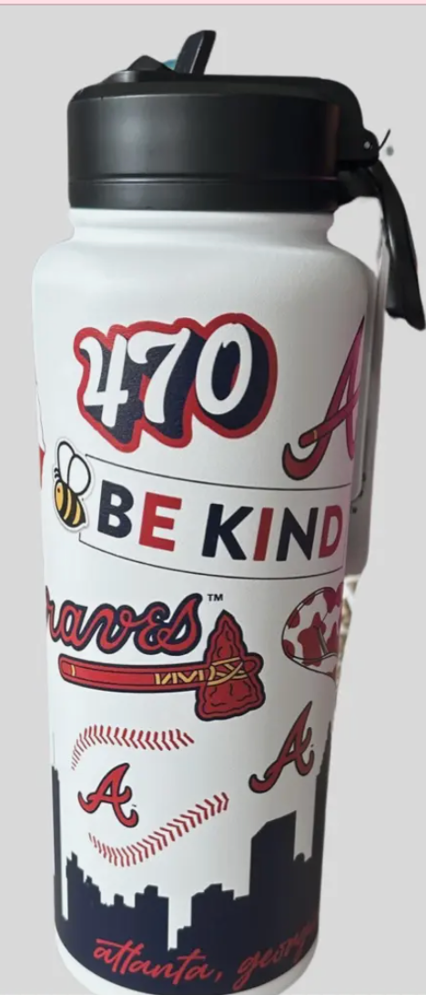 Logobrands Atlanta Braves All Over Print 34oz Quencher Bottle NEW
