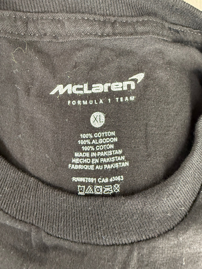 This McLaren Miami Formula 1 Team tee is made is 100% cotton material and features a sleek black design. Represent the racing industry in style with this expertly crafted and scientific tee. Chest 48", Length 30".