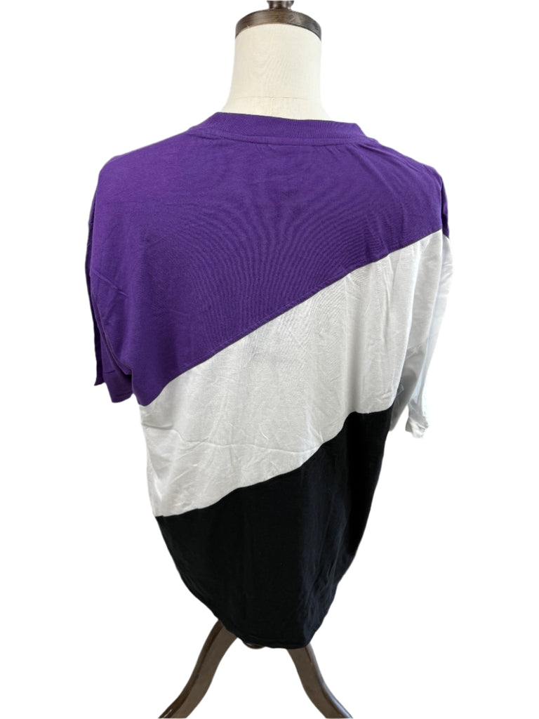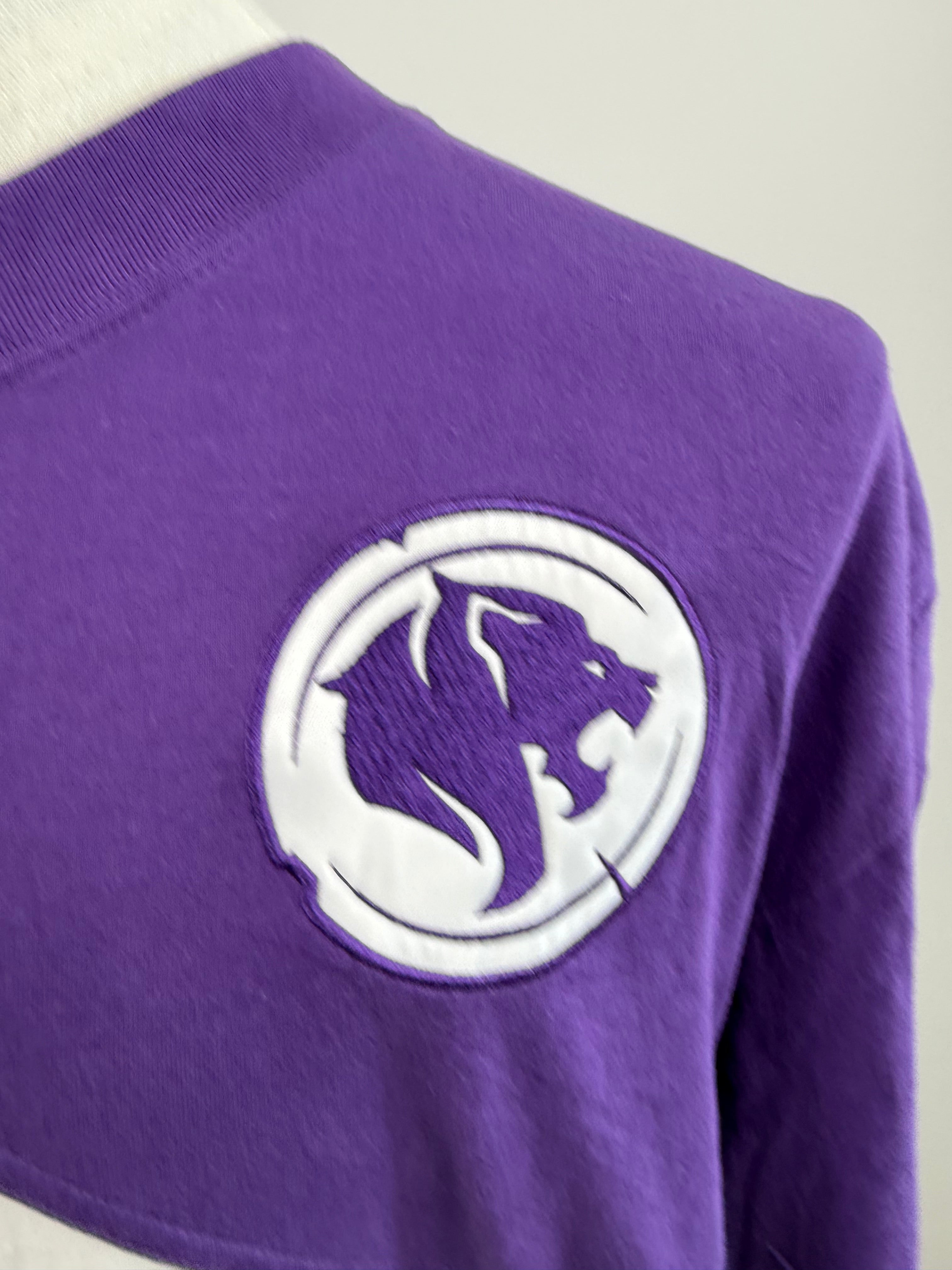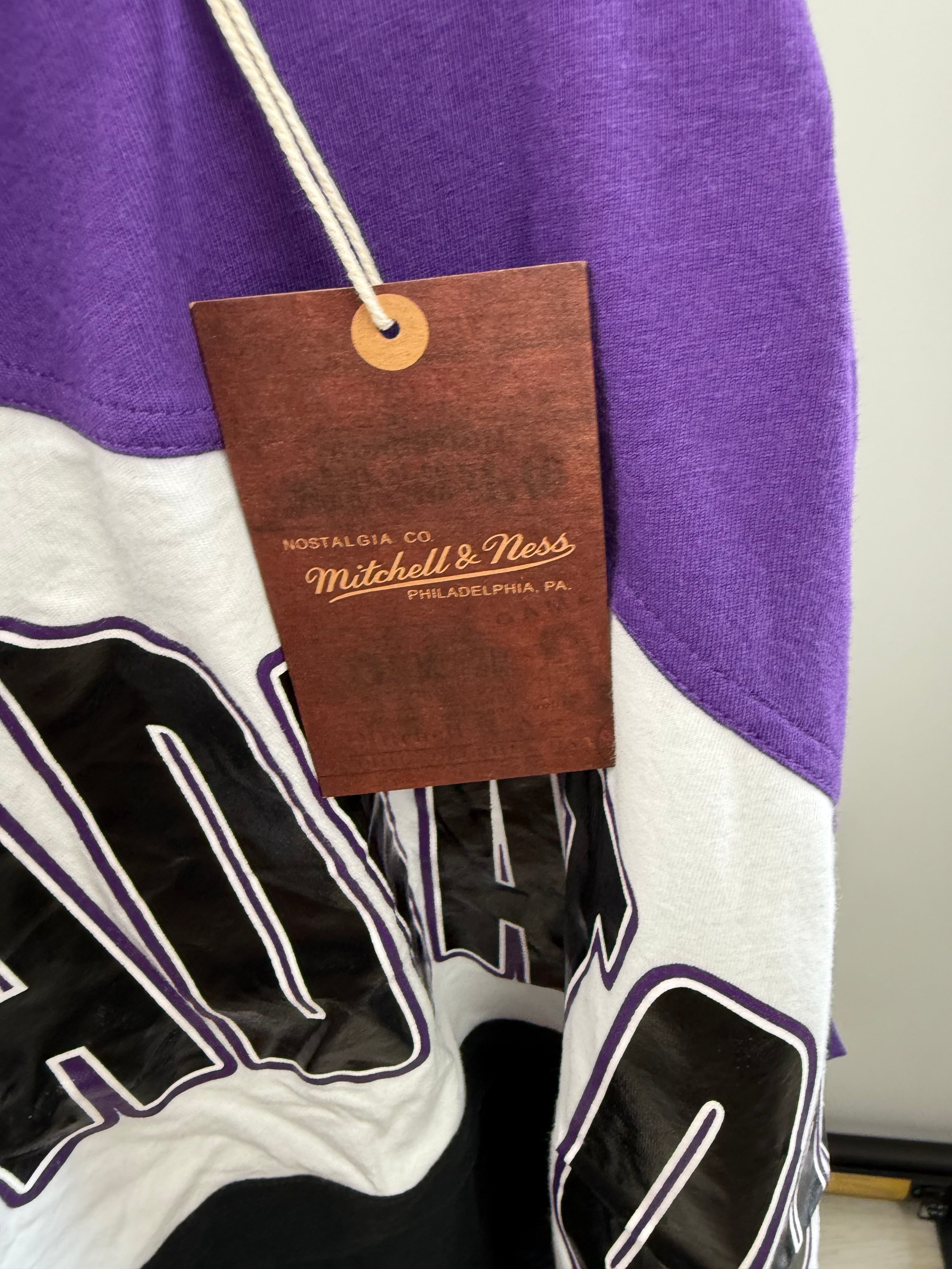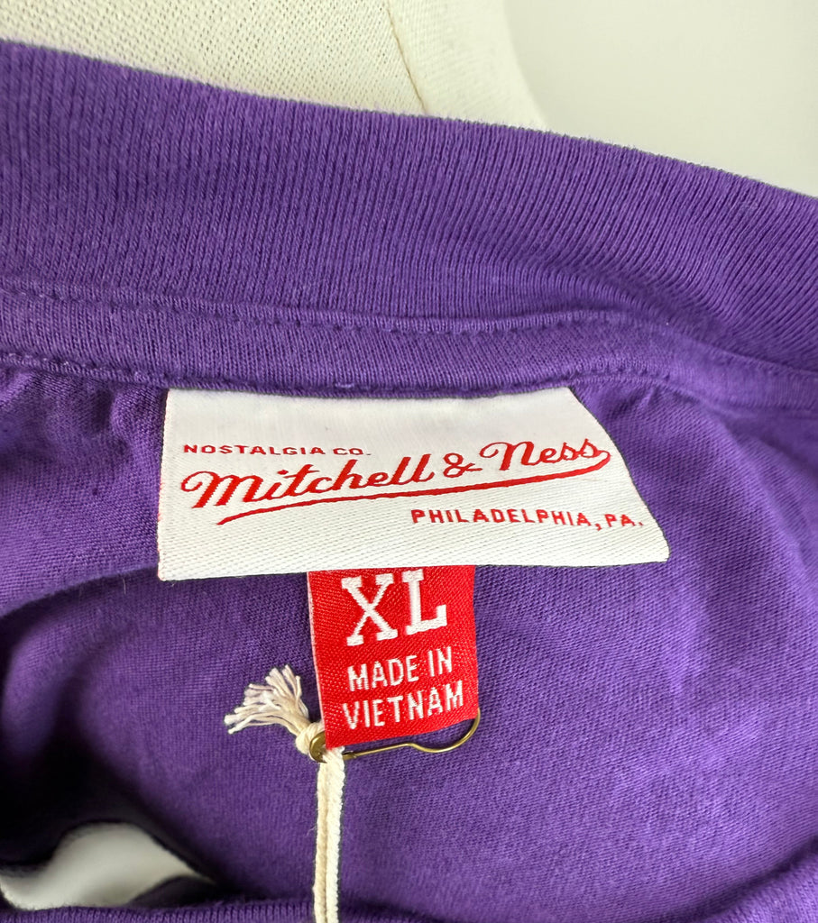 This Mitchell & Ness Los Angeles Gladiators Overwatch League tee features a striking embroidered design in white, purple, and black, showcasing team pride with expert craftsmanship. Made from soft cotton, it offers comfort and breathability. With a chest measurement of 50" and a length of 30", this XL shirt provides a relaxed fit ideal for everyday wear or game day. Perfect for fans seeking quality and style in their esports apparel.
