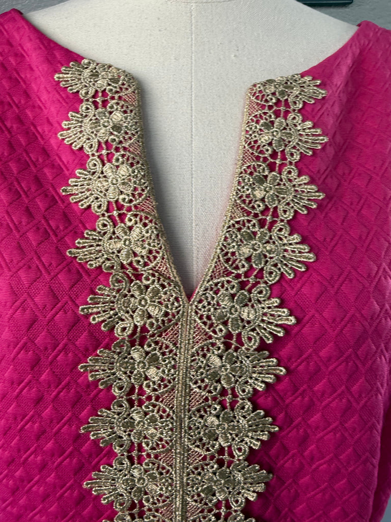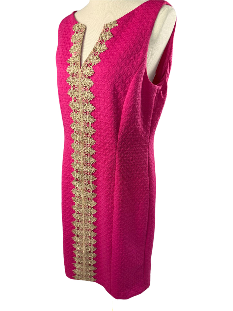 Pappagallo Brook Tropical Pink Gold Trim Shift Dress Size 10 NEW