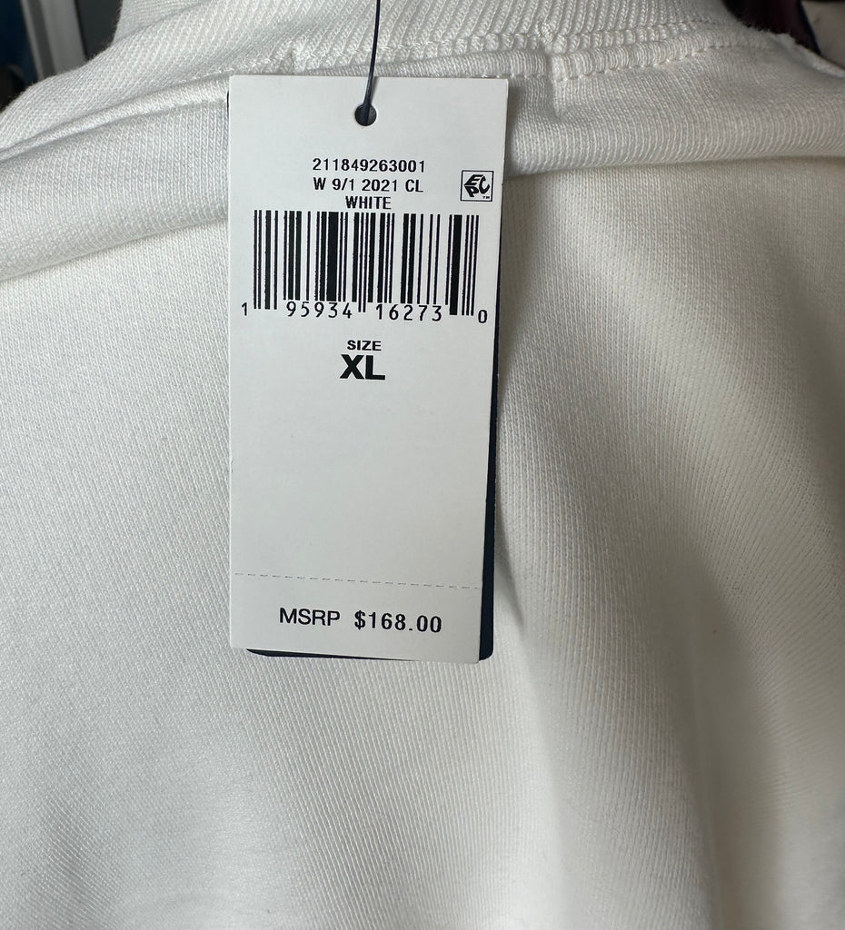 Impeccably crafted with soft fabric, this Polo Ralph Lauren Oversized Logo Crewneck Sweatshirt is a must-have for any wardrobe. The classic design features a clean white background with a bold red and black logo, making it versatile for any occasion. Stay comfortable and stylish with this timeless piece. Measurements: Chest 60", Length 25". New with tags.