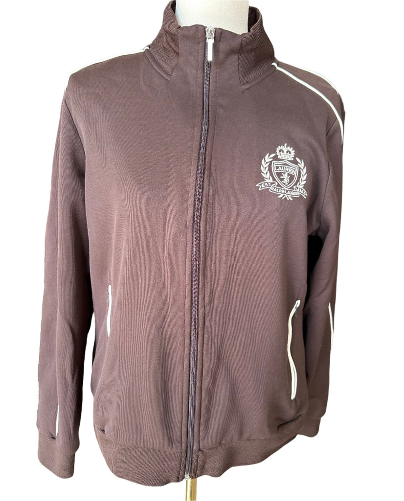 Ralph Lauren Active Womens Vintage Chocolate Brown Track Jacket Size Large*