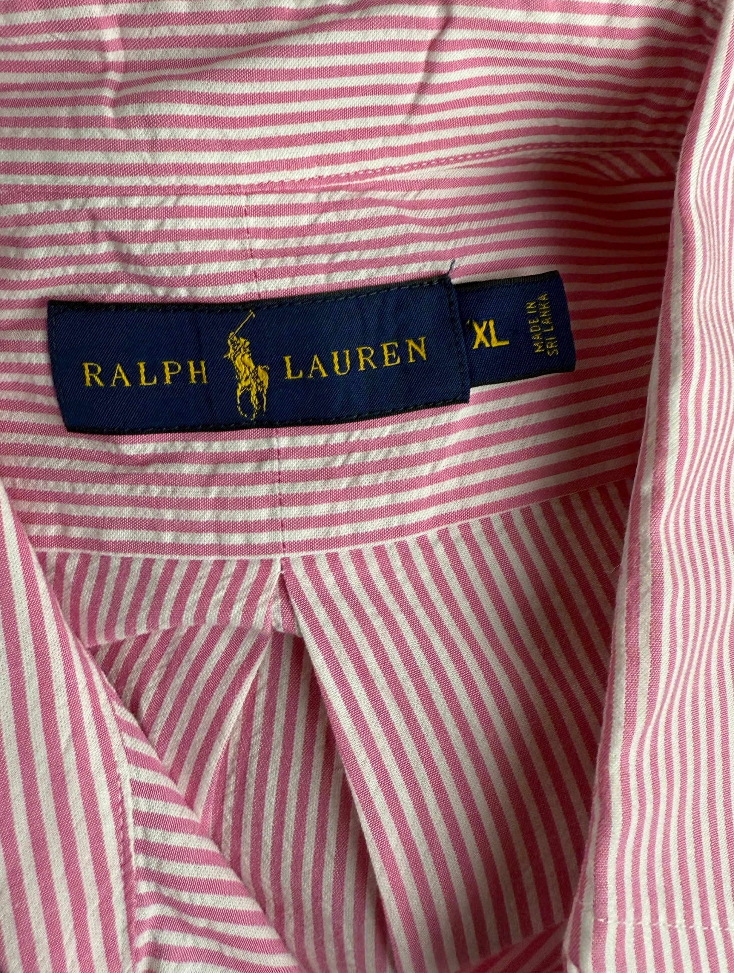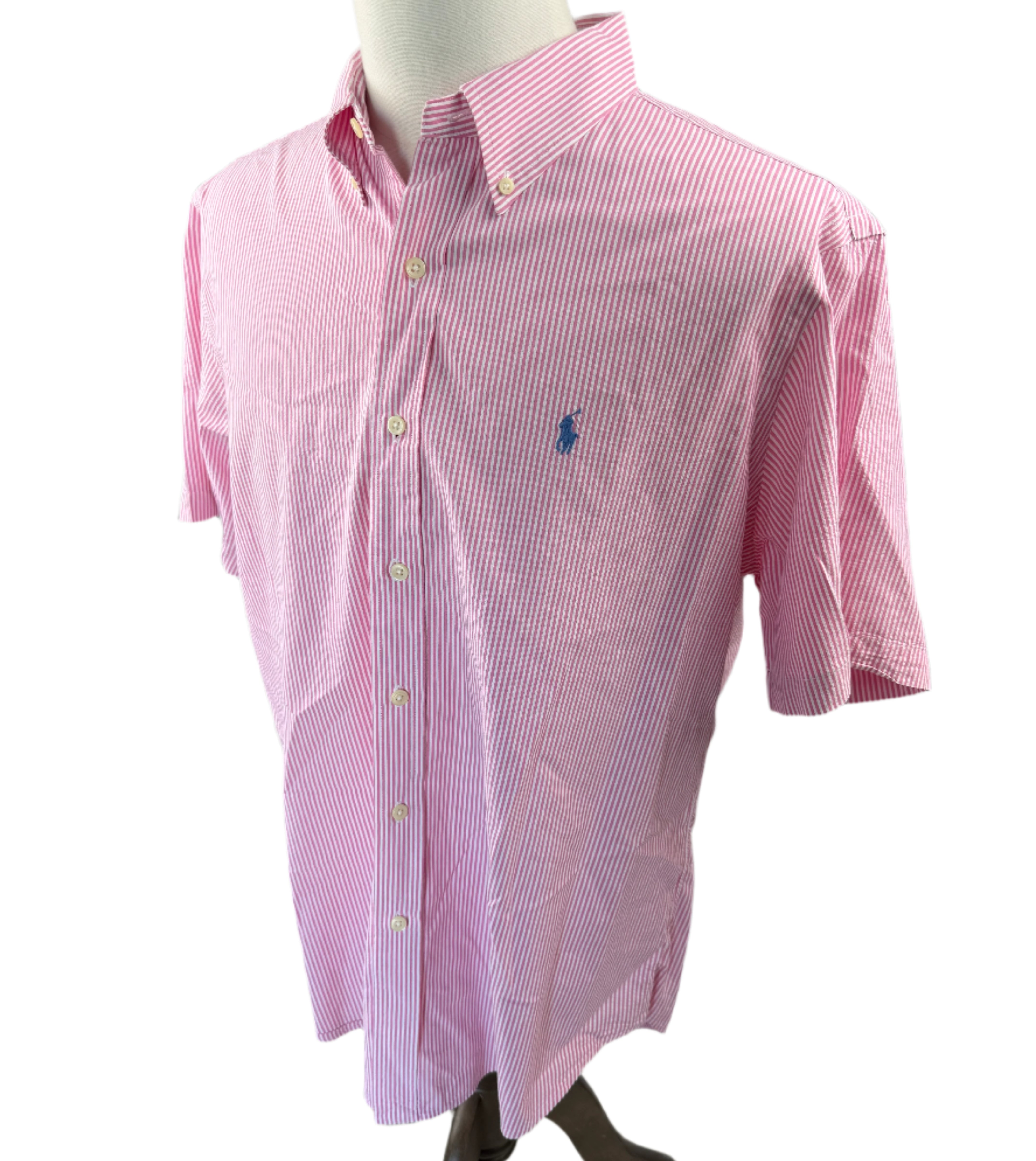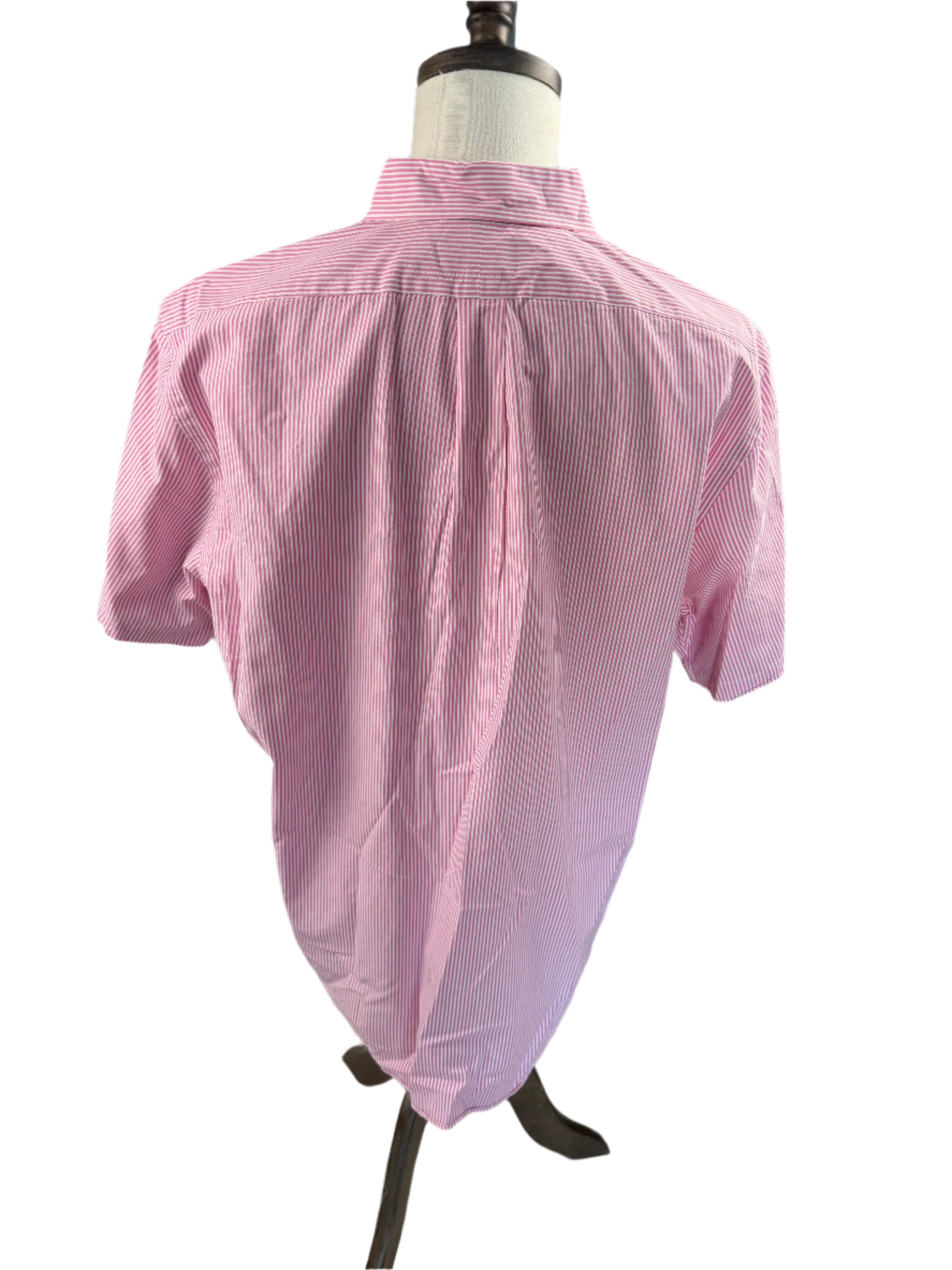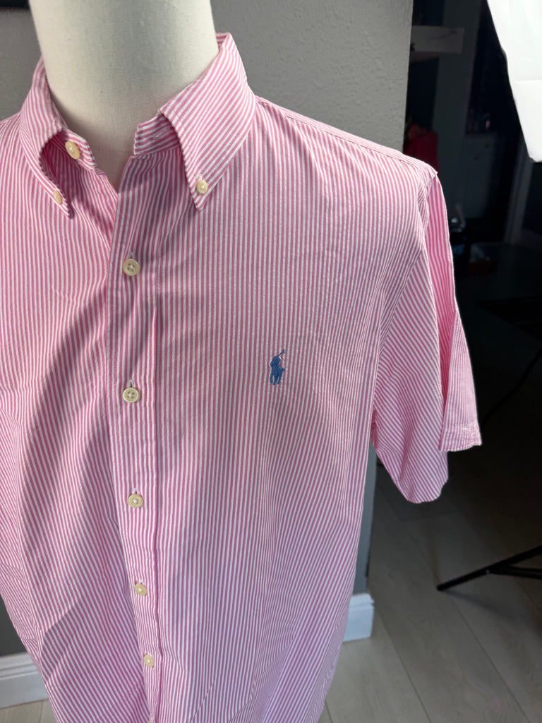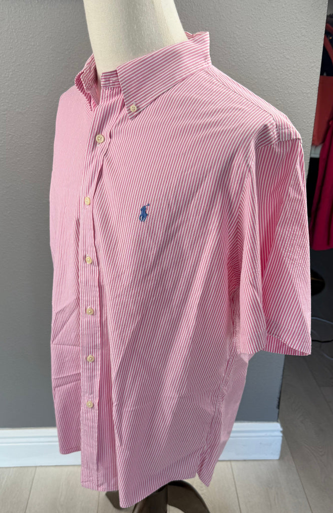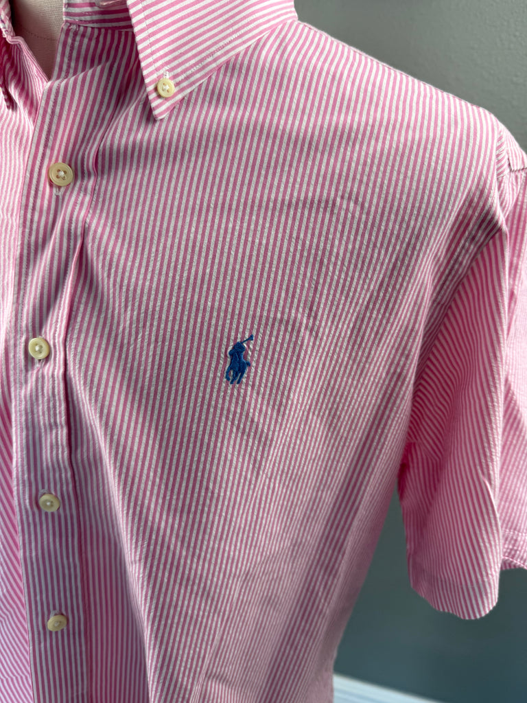 Ralph Lauren Seersucker Pink Striped Short Sleeve Preloved Mens Shirt XL*