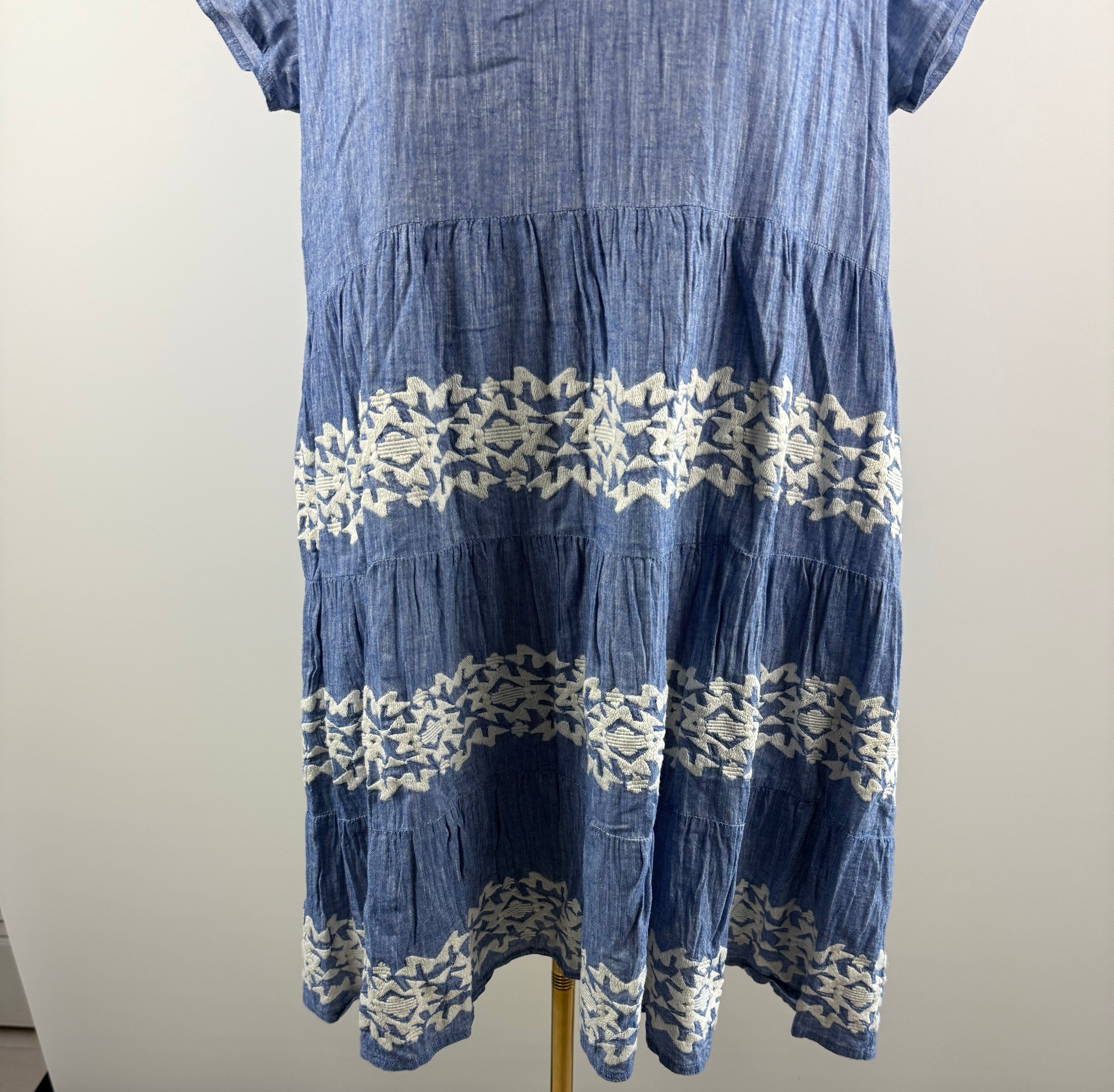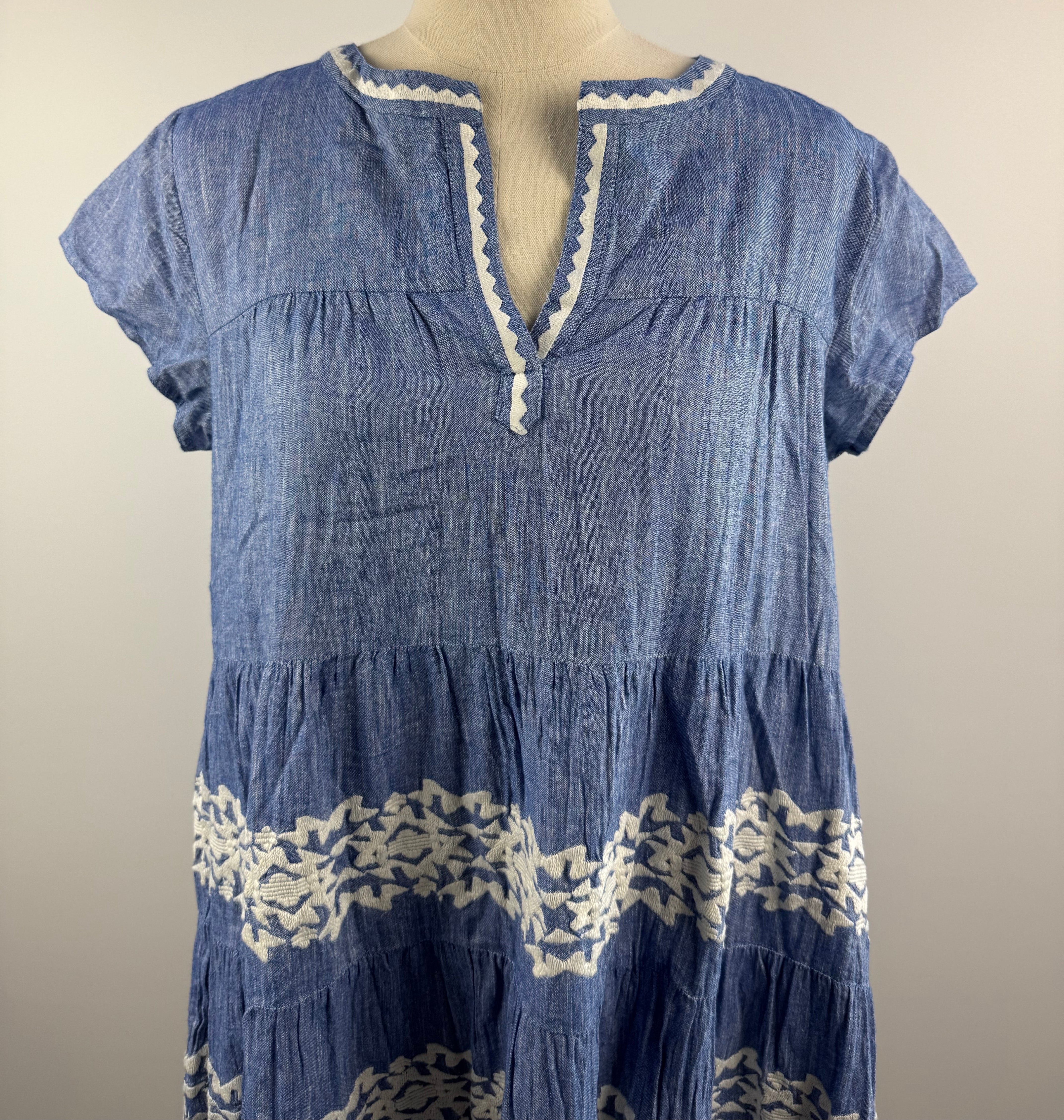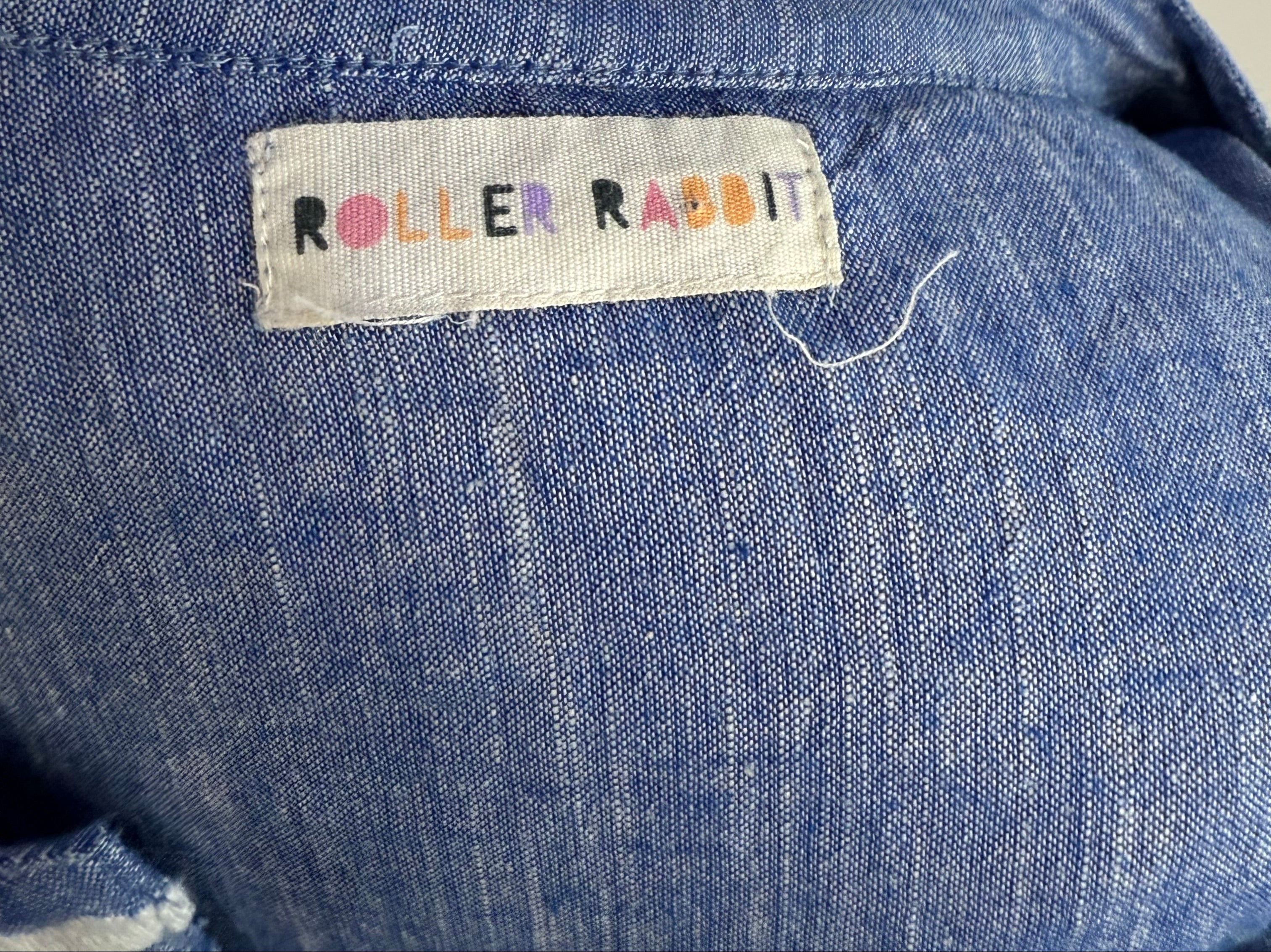Roller Rabbit Blue Chambray Embroidered Lined Preloved Midi Dress Large*