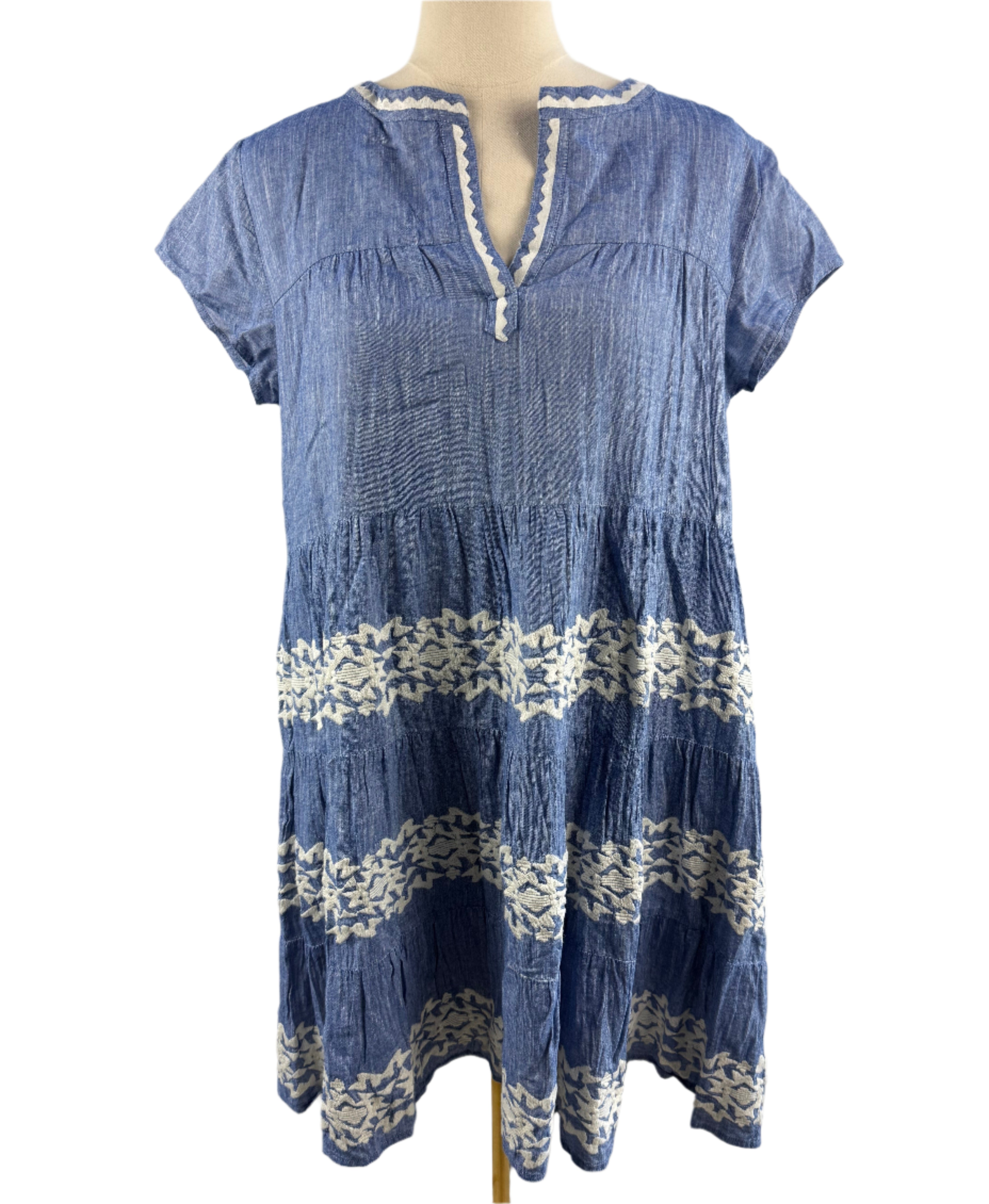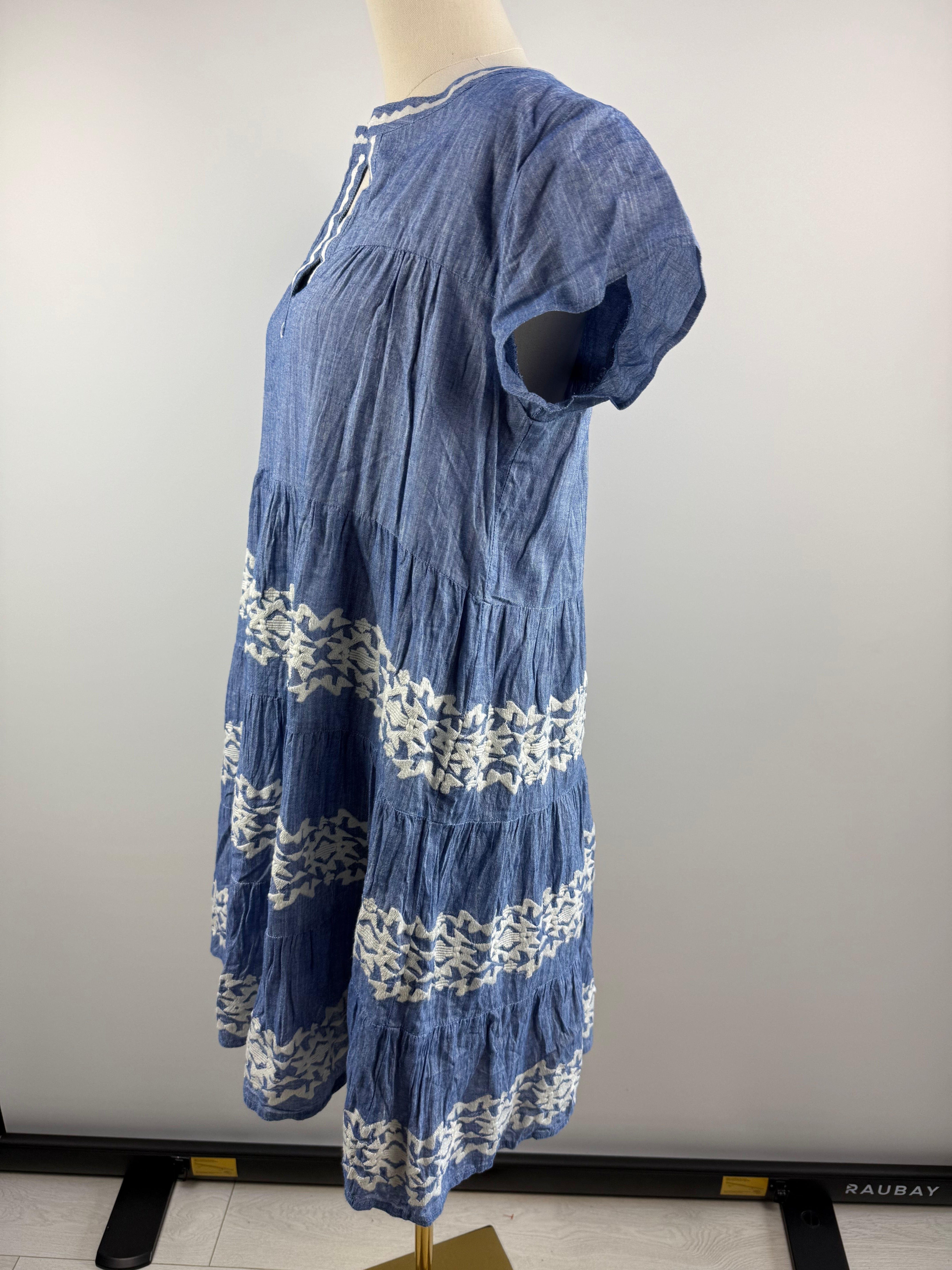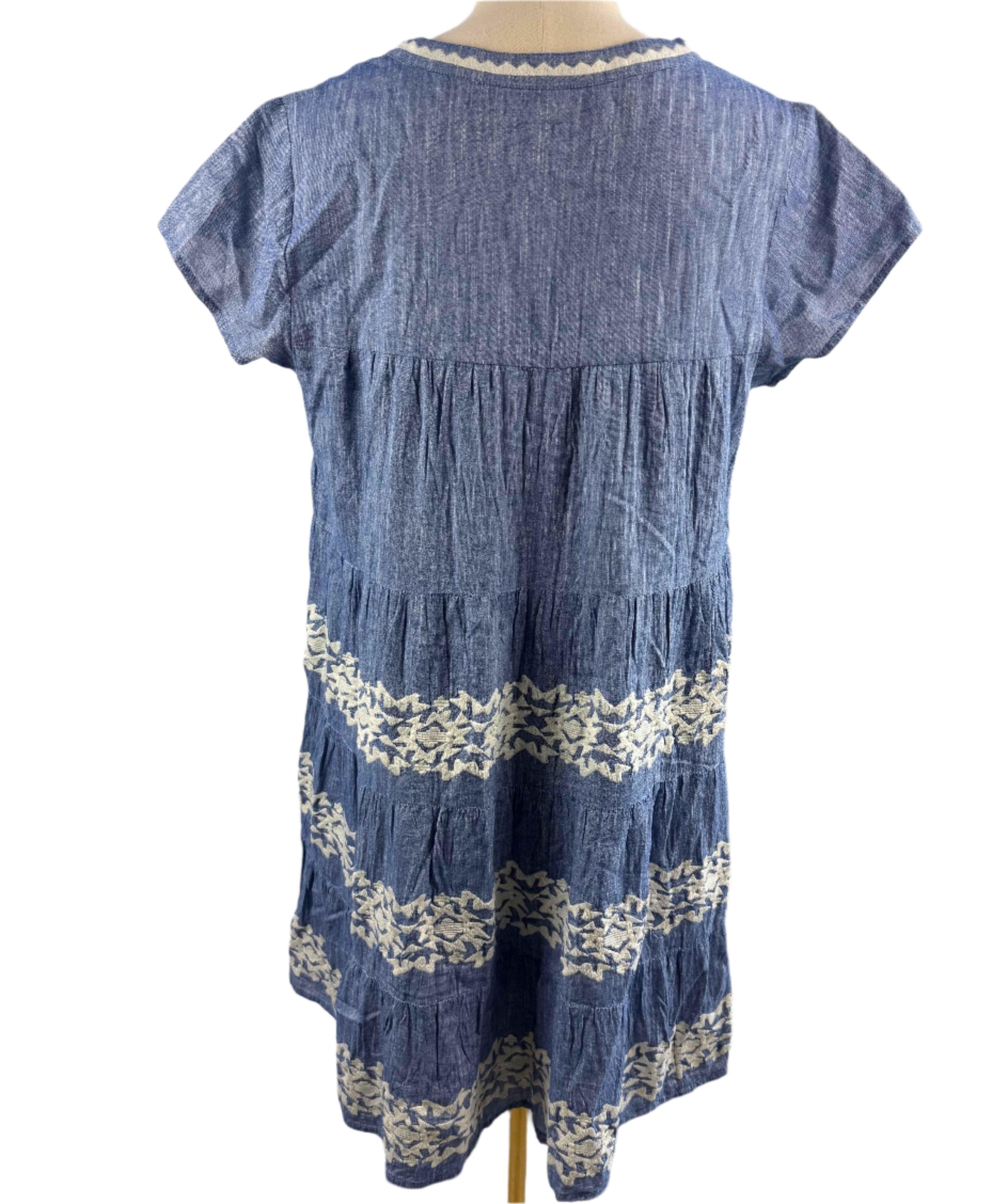 Roller Rabbit Blue Chambray Embroidered Lined Preloved Midi Dress Large*