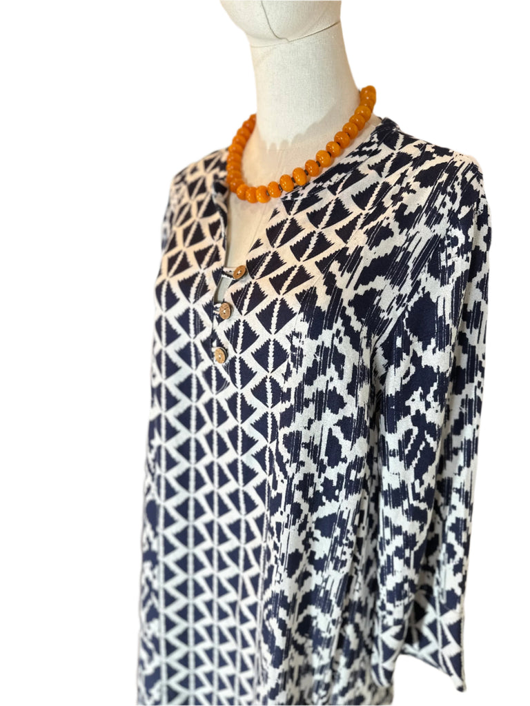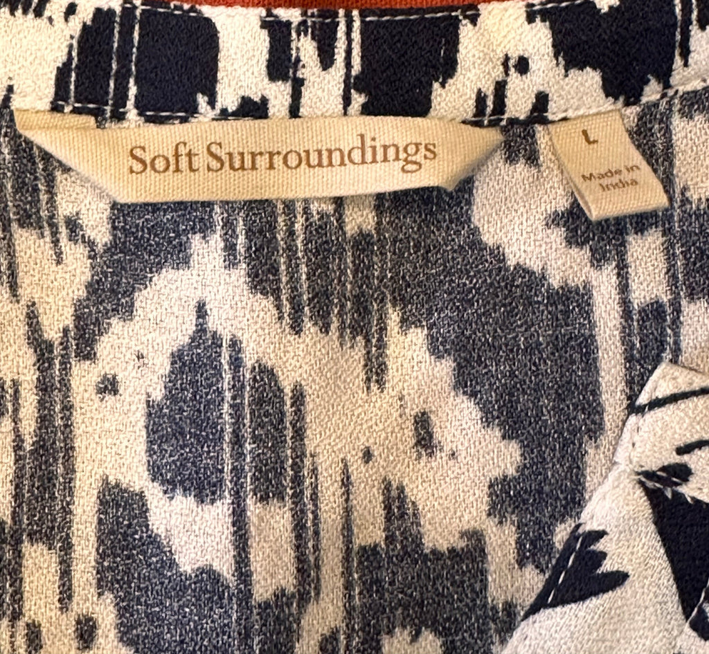 Soft Surroundings Raven Long Sleeve Vintage Shirt Dress Navy/White*