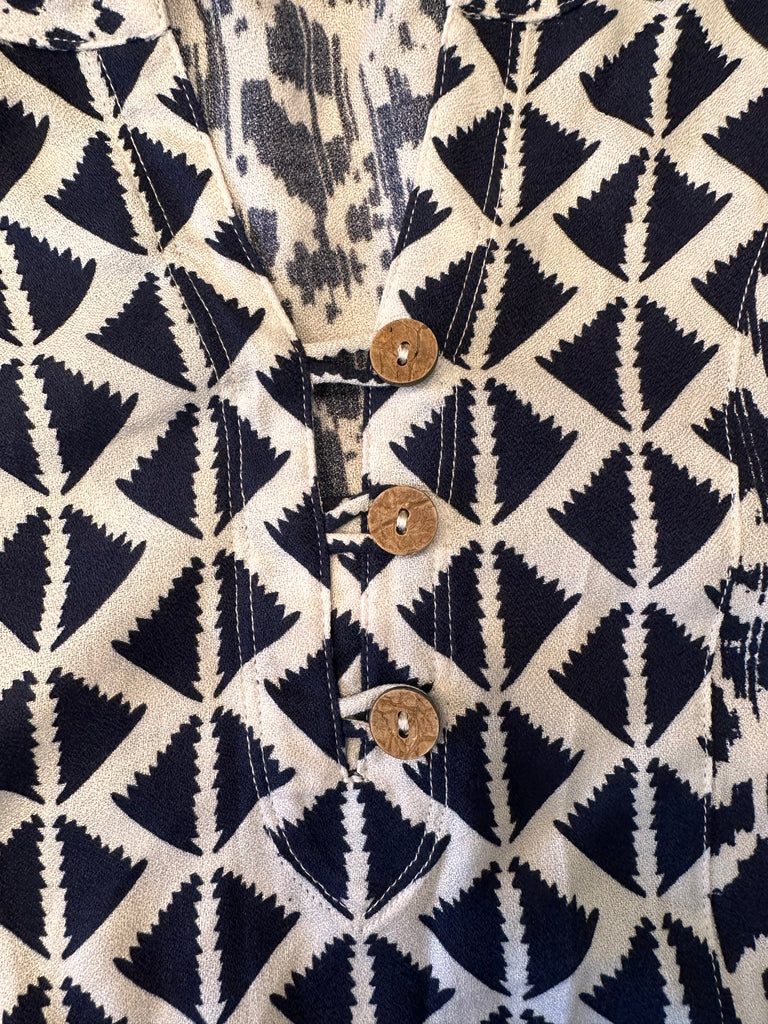 Expertly crafted from soft, flowing rayon, the Soft Surroundings Raven Long Sleeve Vintage Shirt Dress is a must-have for any wardrobe. Its lightweight and comfortable fabric offers a flattering fit, perfect for any occasion. Add a touch of vintage charm to your style with this navy and white striped dress. Measurements: Bust 22", Sleeve 20", Length 39". *2Sistahs Take2 Collection-Vintage.
