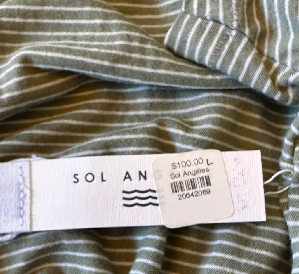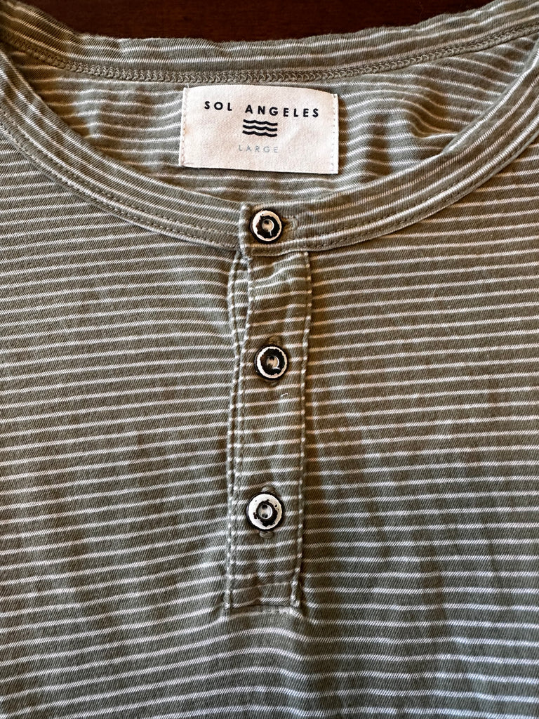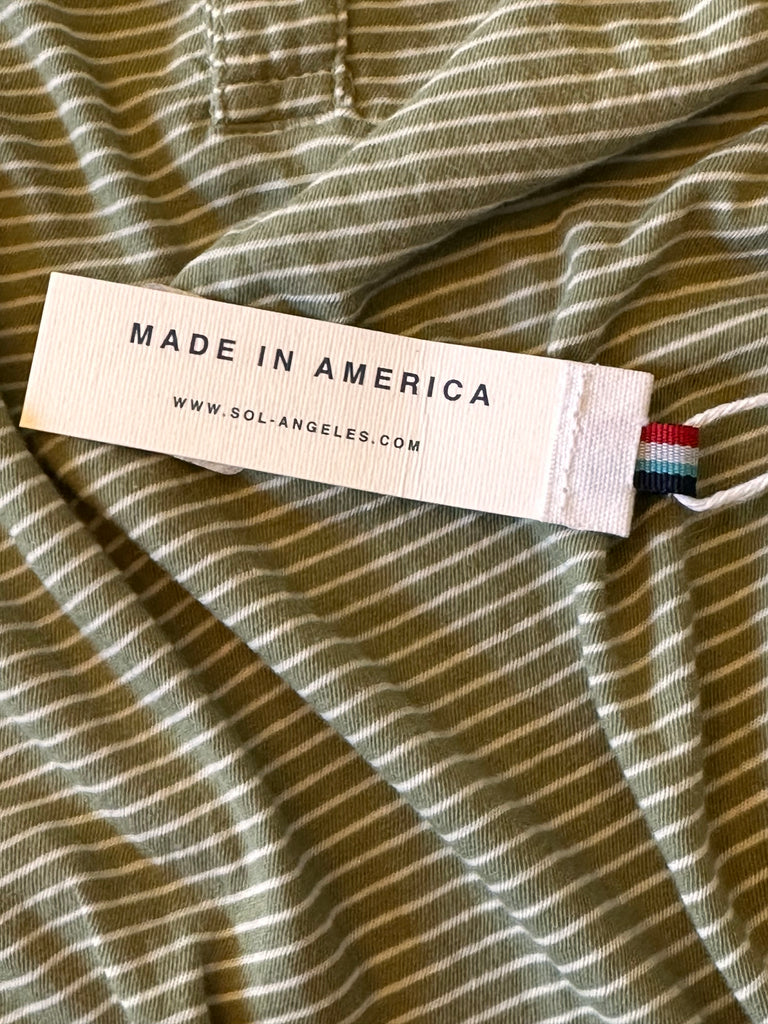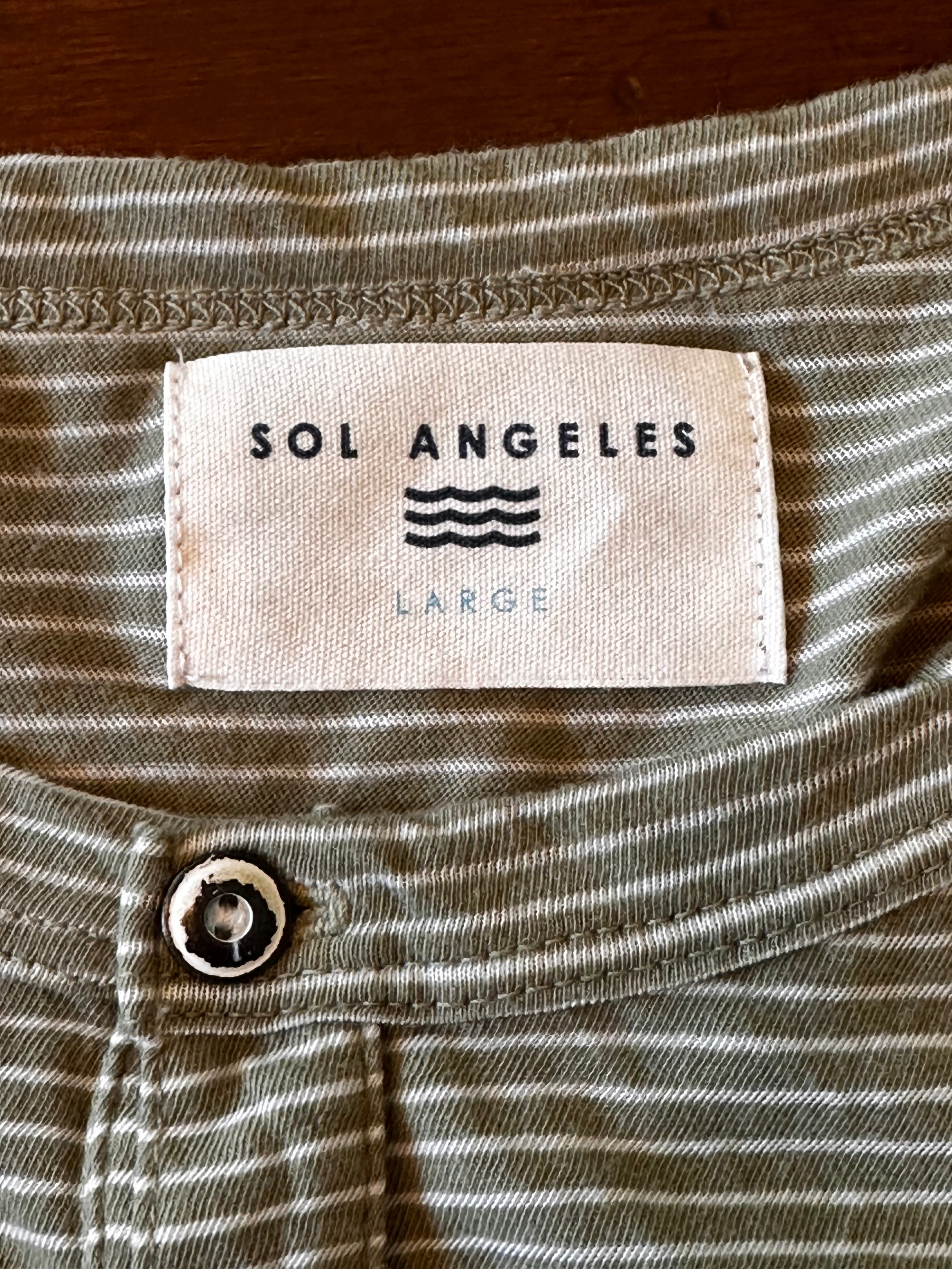 Sol Angeles Olive Green Striped Henley Made In USA Large NEW