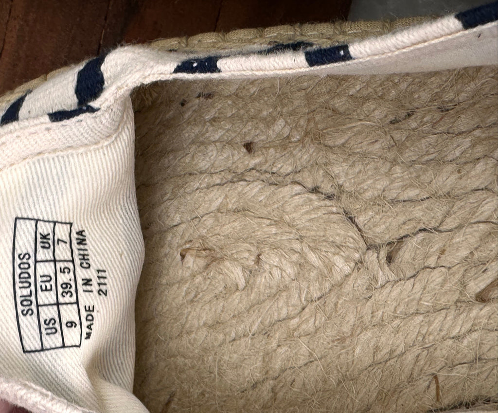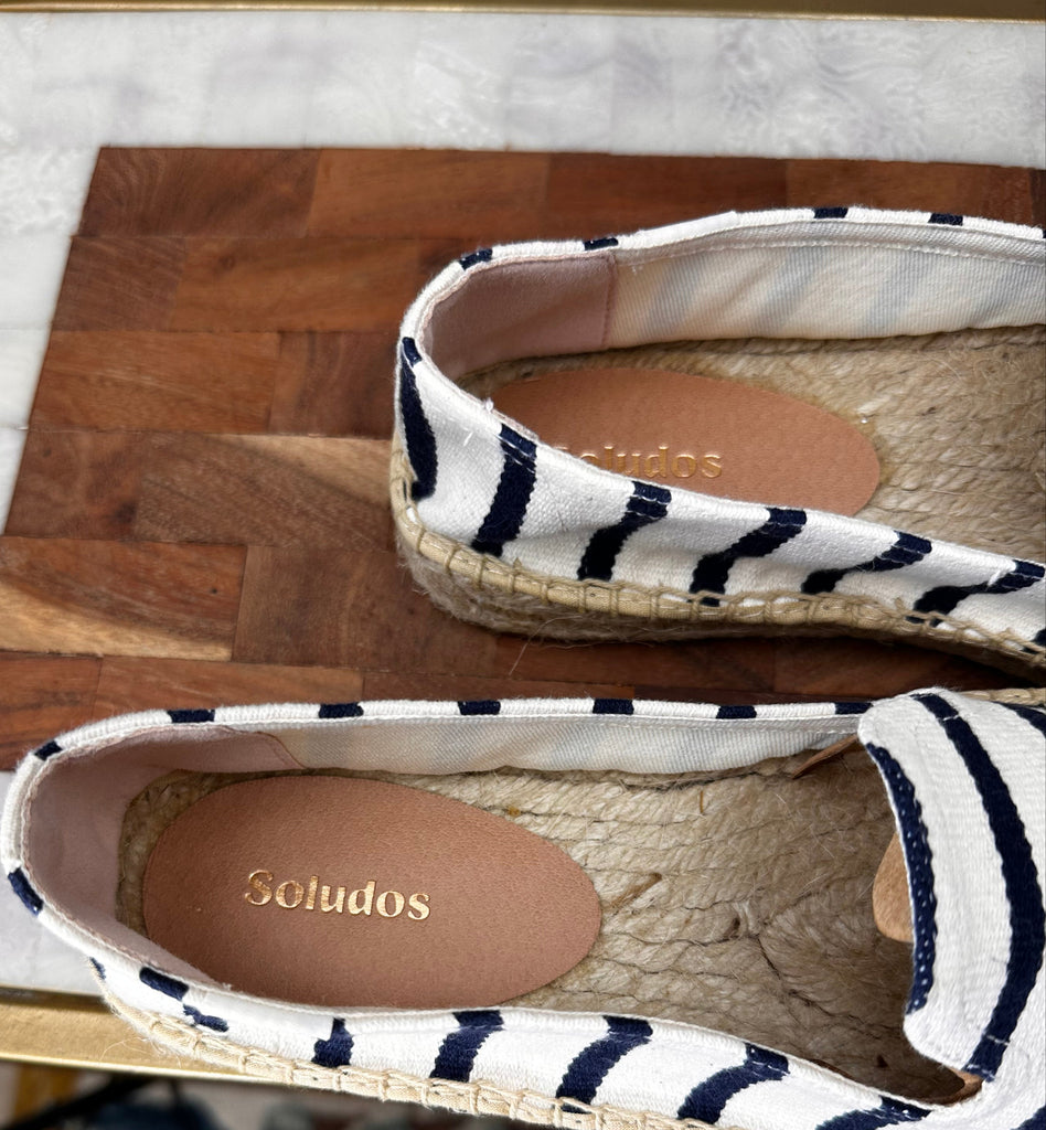 Soludos Navy & White Striped Slip On Espadrilles Womens Size 9 New