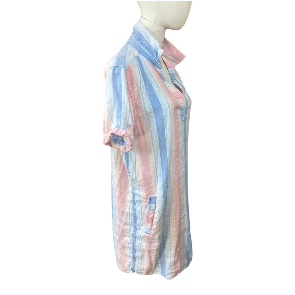 Southern Tide Pink & Blue Striped Linen Cotton Mini Shirt Dress Preloved Large*