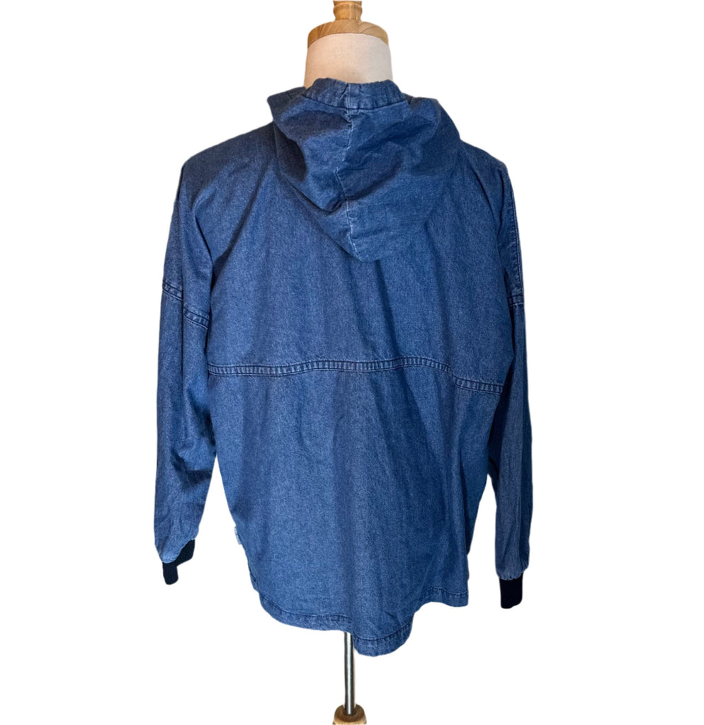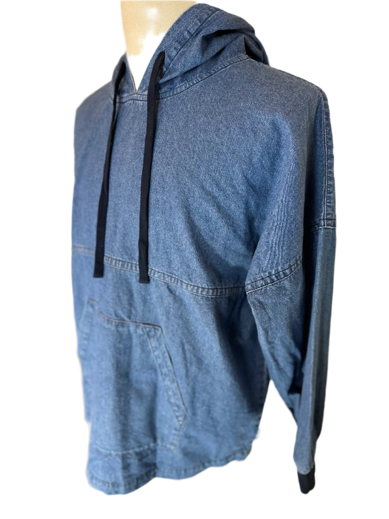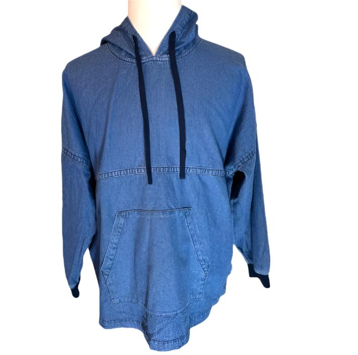 Expertly crafted for unrivaled comfort and style, the Spirit Jersey Chambray Denim Oversized Unisex Hoodie boasts a chest size of 52 inches, sleeve length of 18 inches, and a length of 30 inches. Designed with high-quality denim, this hoodie offers a relaxed fit for all-day wear. New without tags.