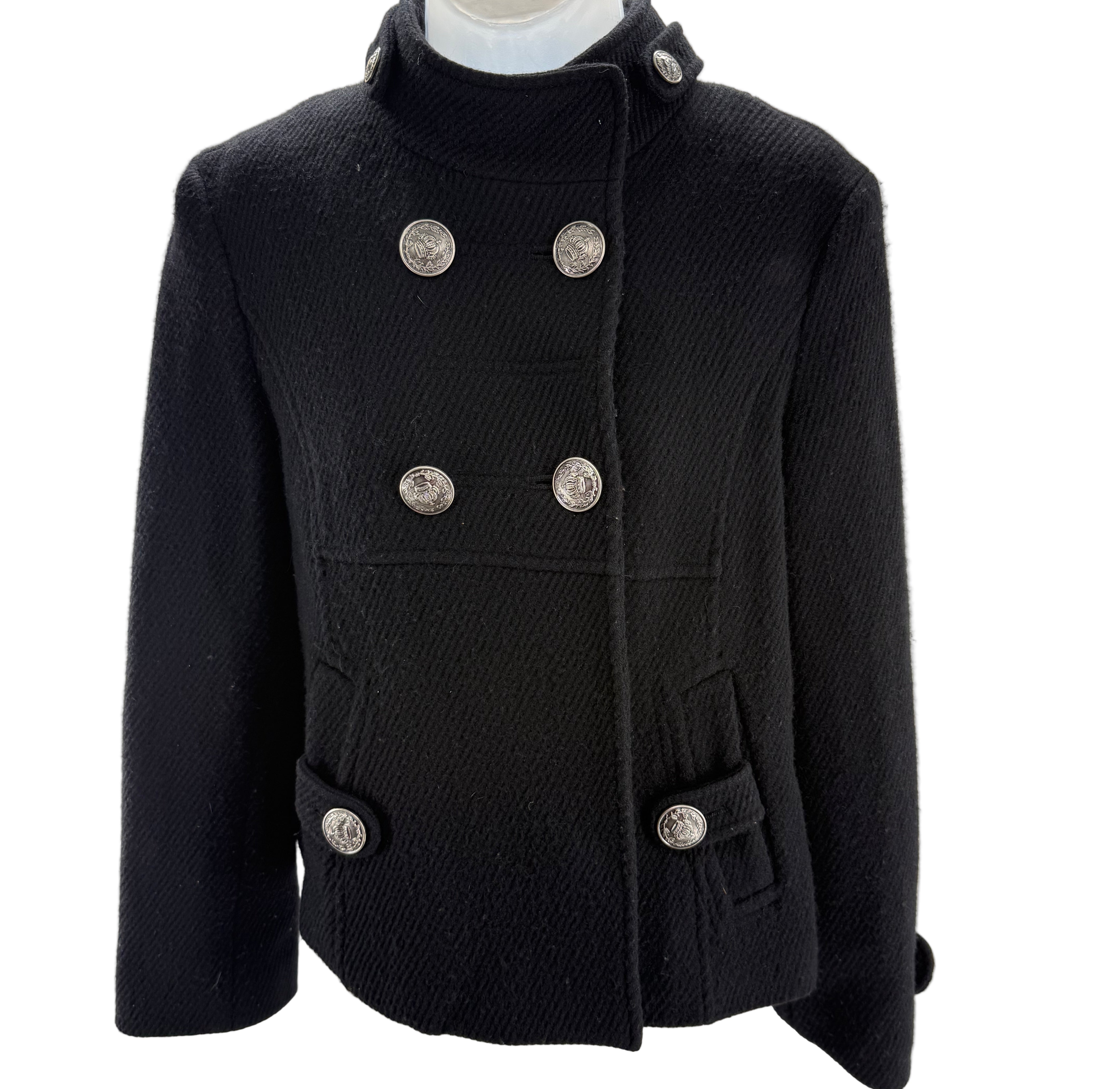 Steve Madden Black Wool Double Breasted Pea Coat Medium*