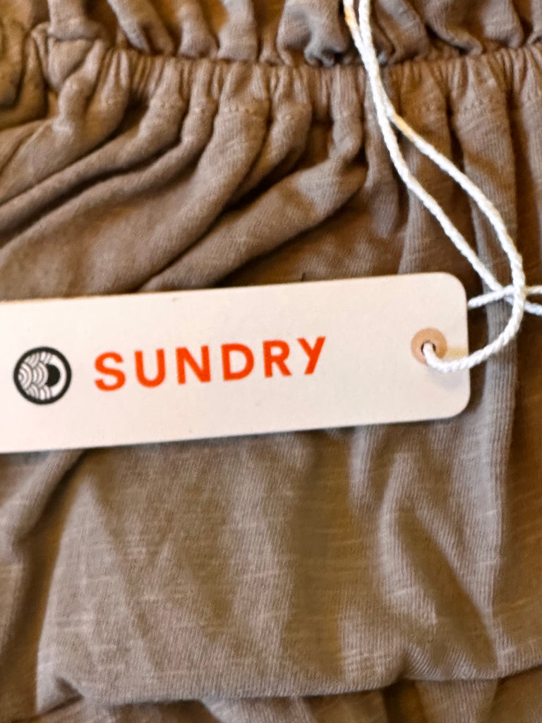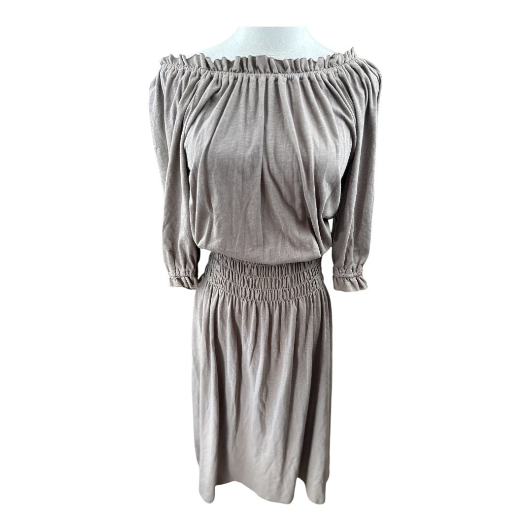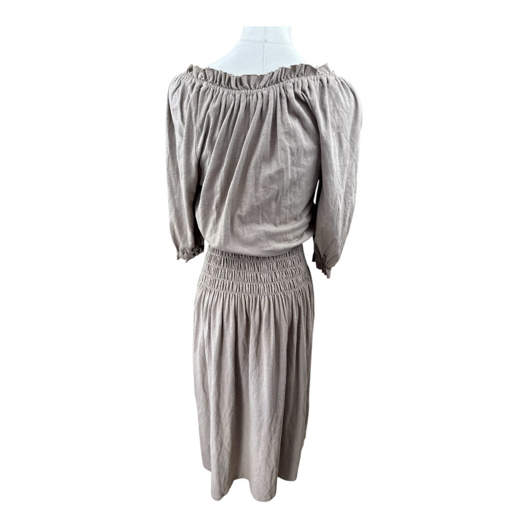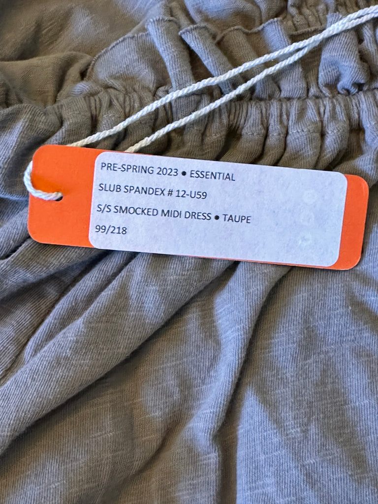 Sundry Taupe Smocked Midi Dress Made In USA Cotton Size Small NEW