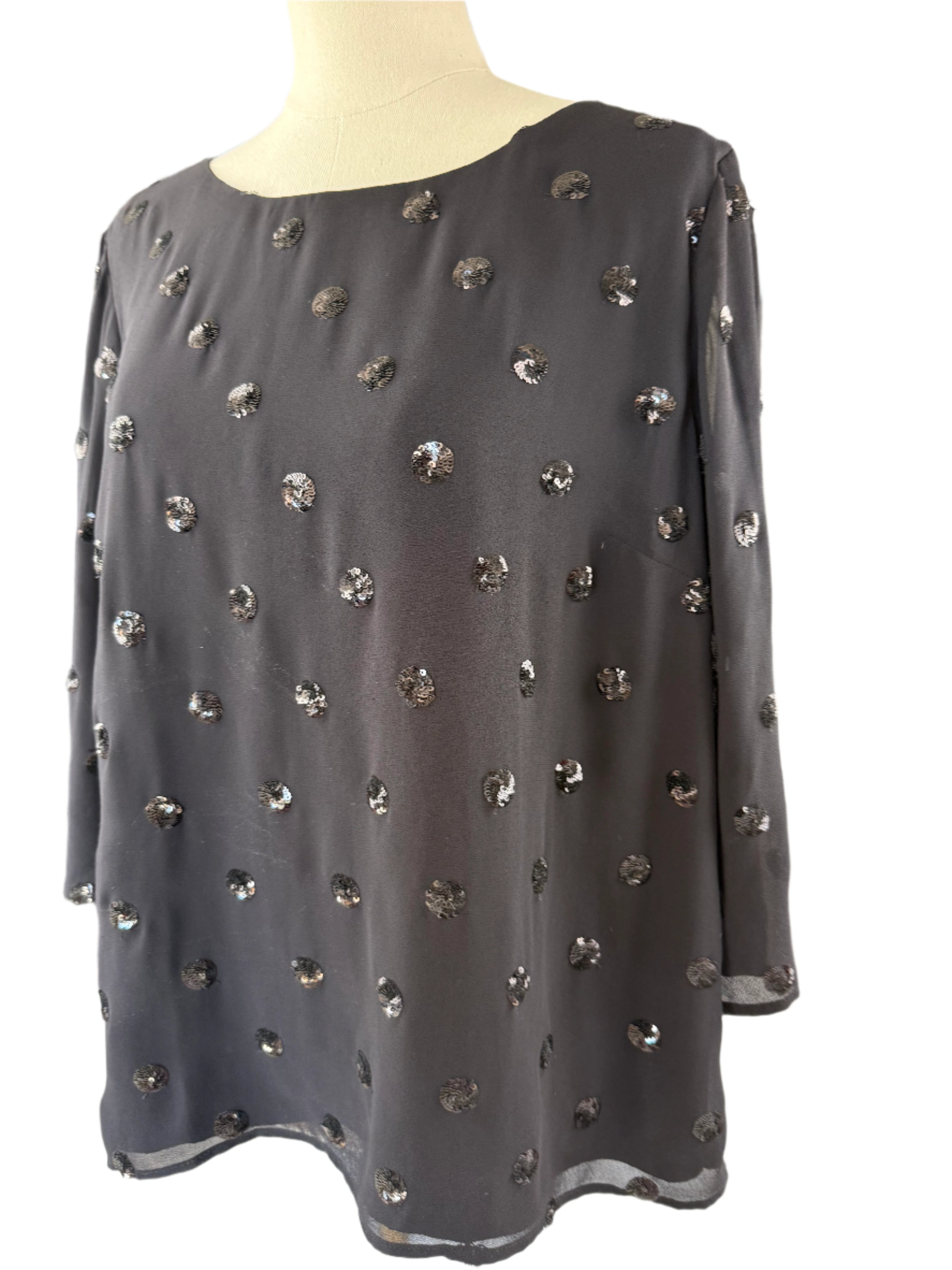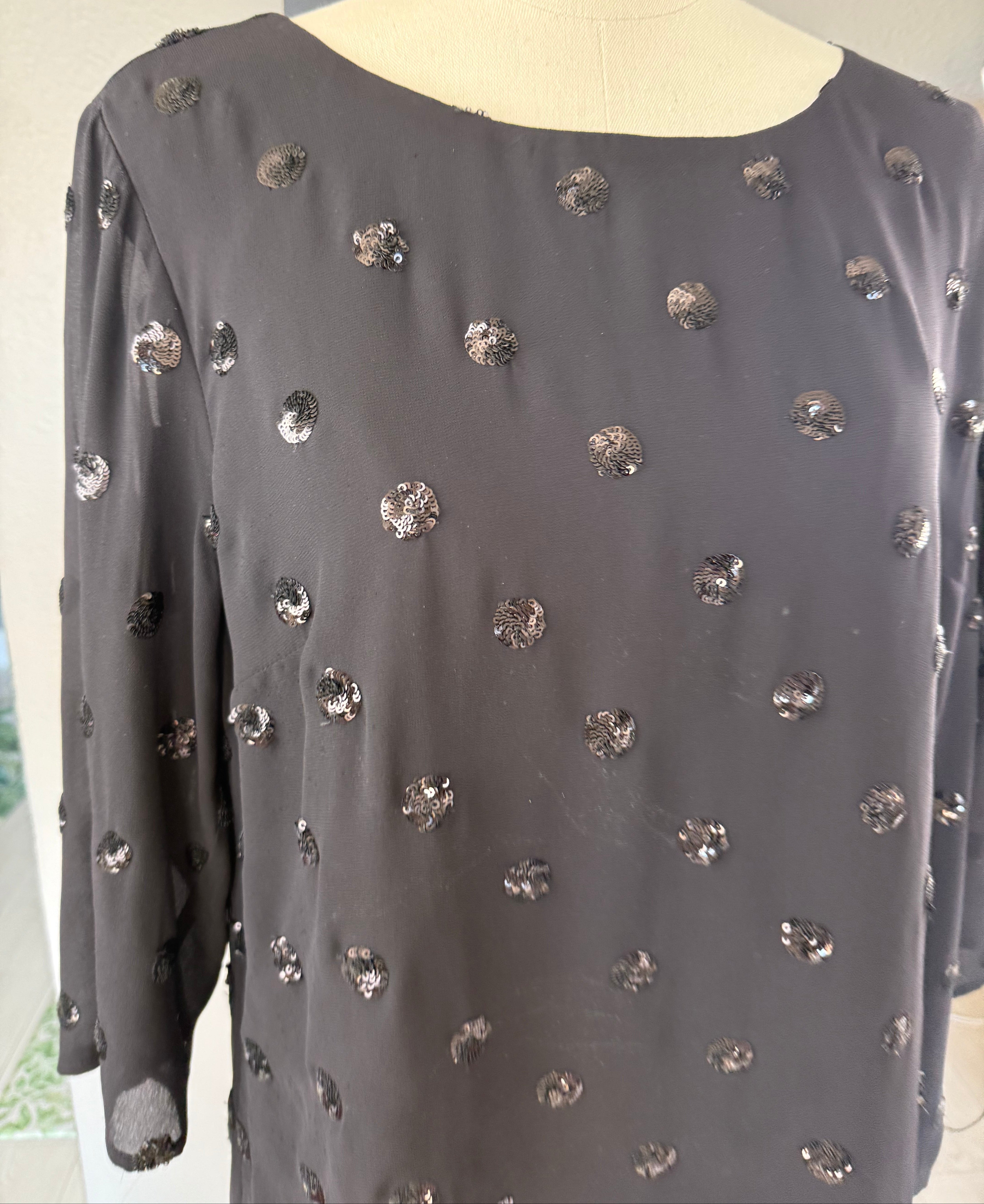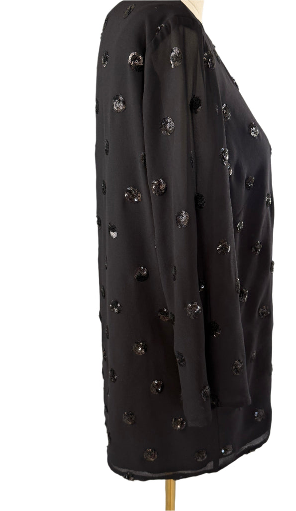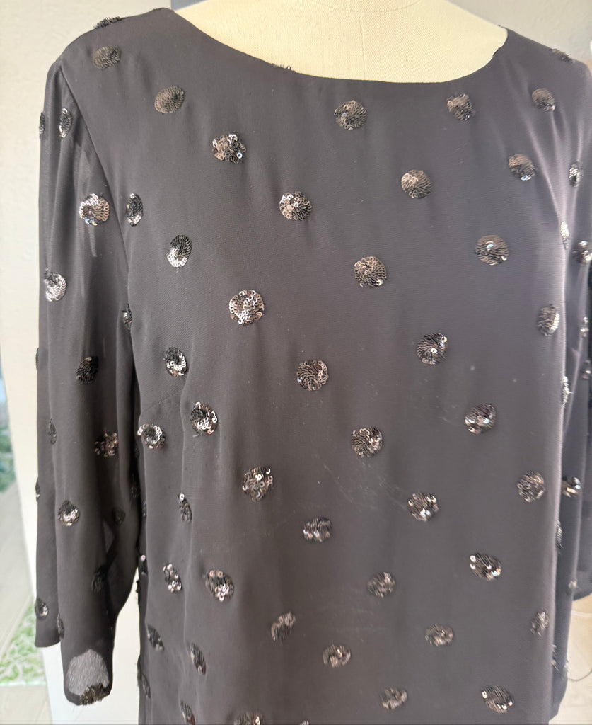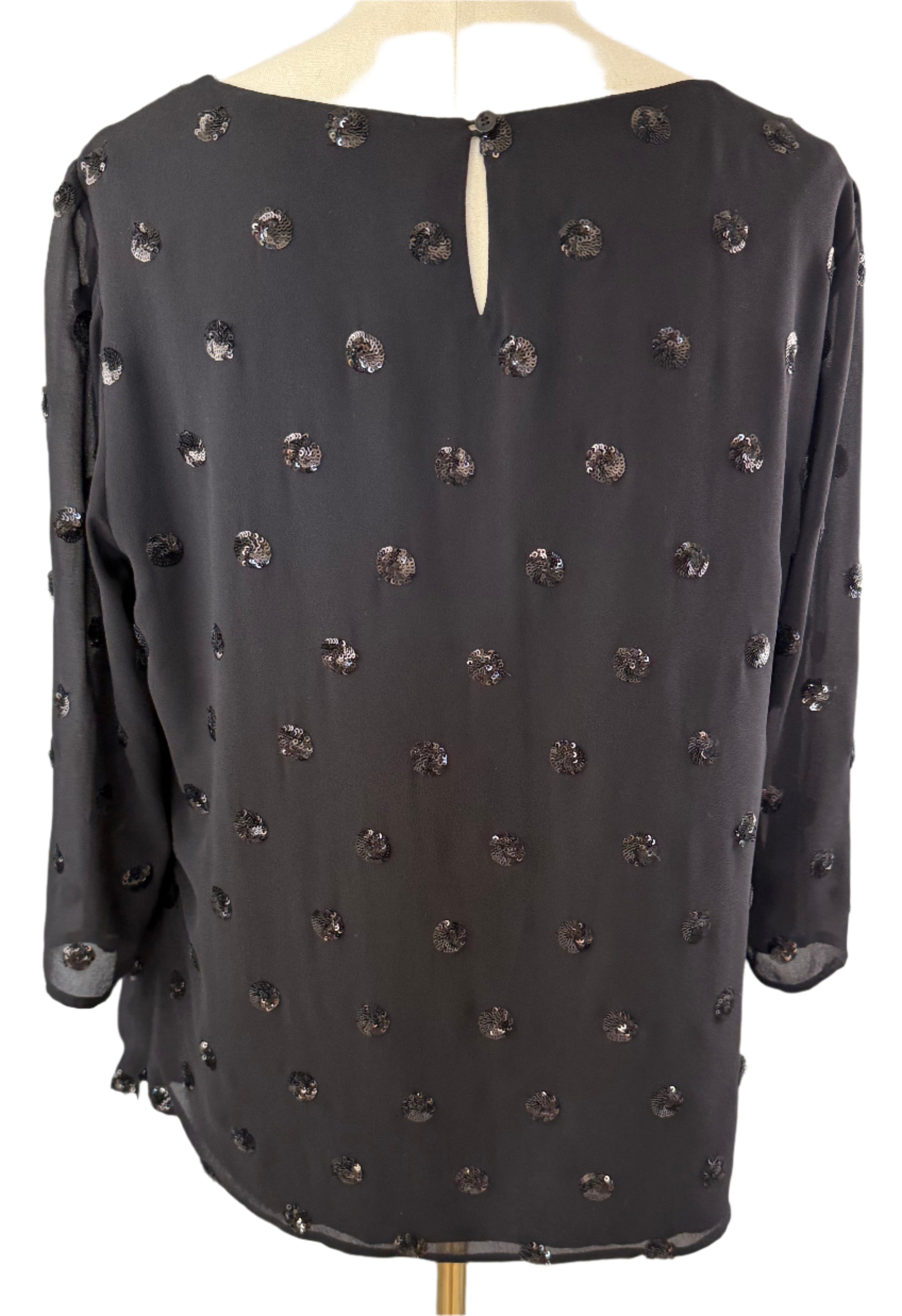 Talbots Black Sequin Dot Cocktail Party Preloved 3/4 Sleeve Blouse Large*