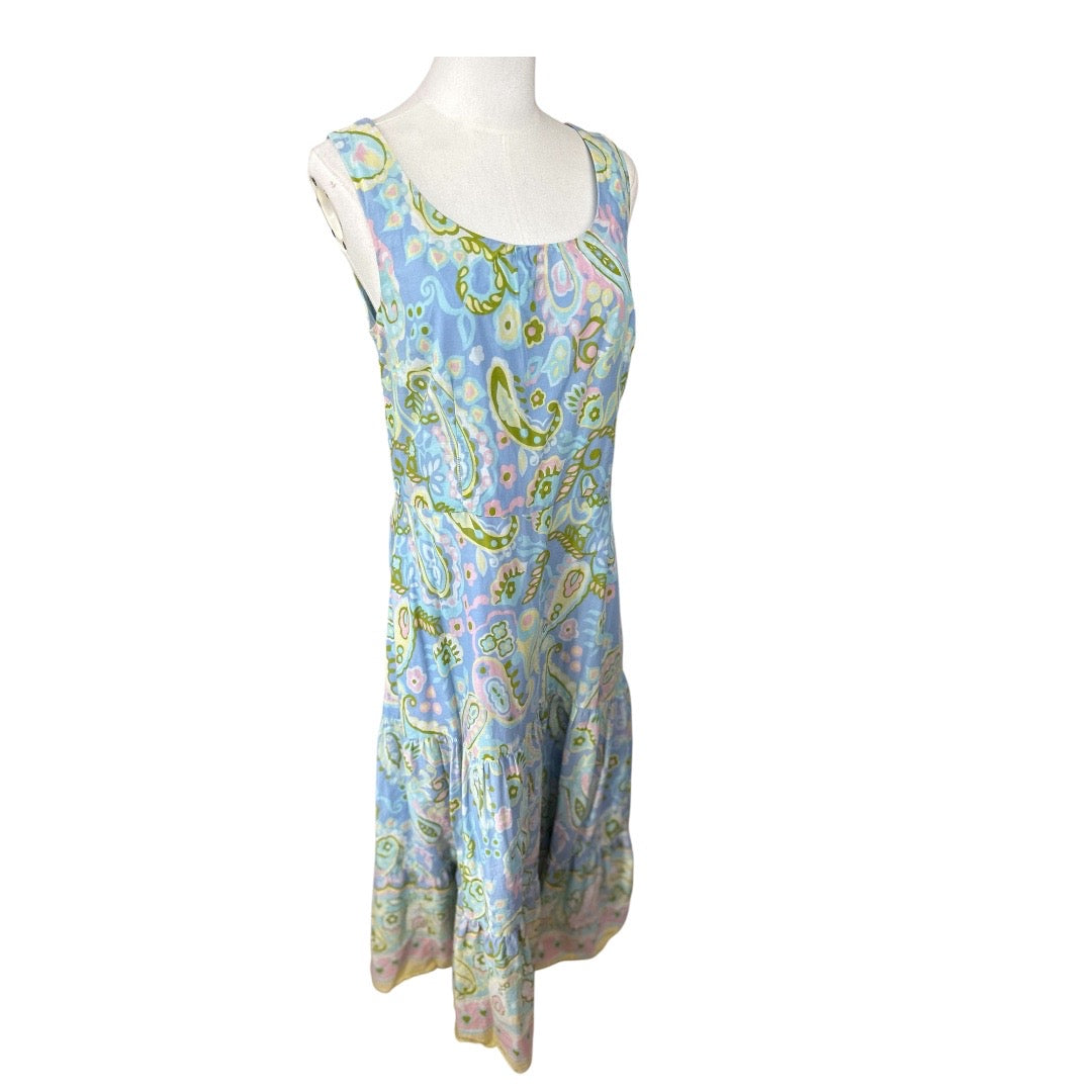 Talbots Voile Pastel Paisley Cotton Midi Dress Preloved Size 8*
