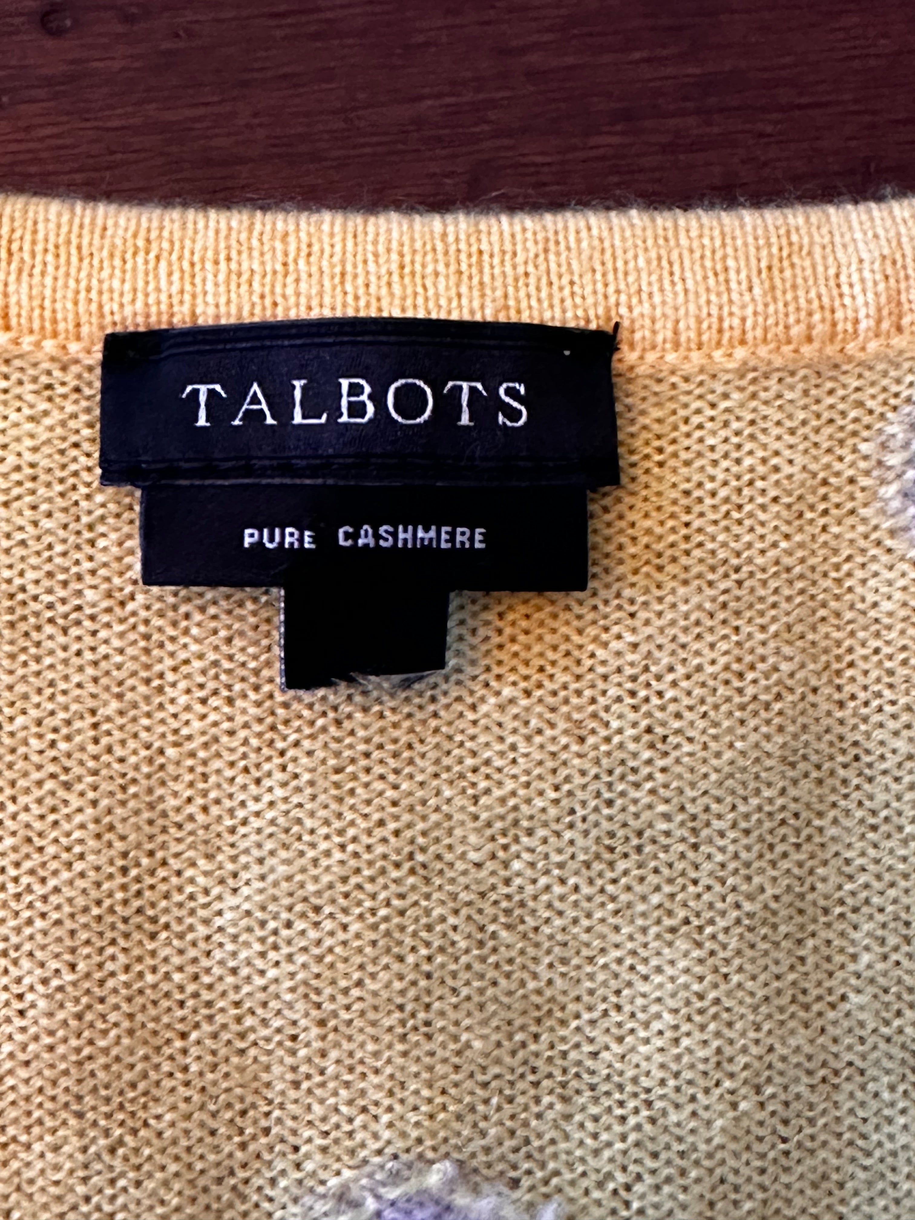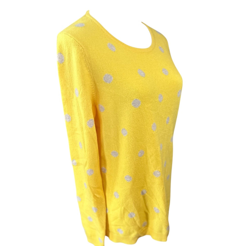 Talbots Yellow Polka Dot 100% Pure Cashmere Crewneck Sweater Preloved Large*