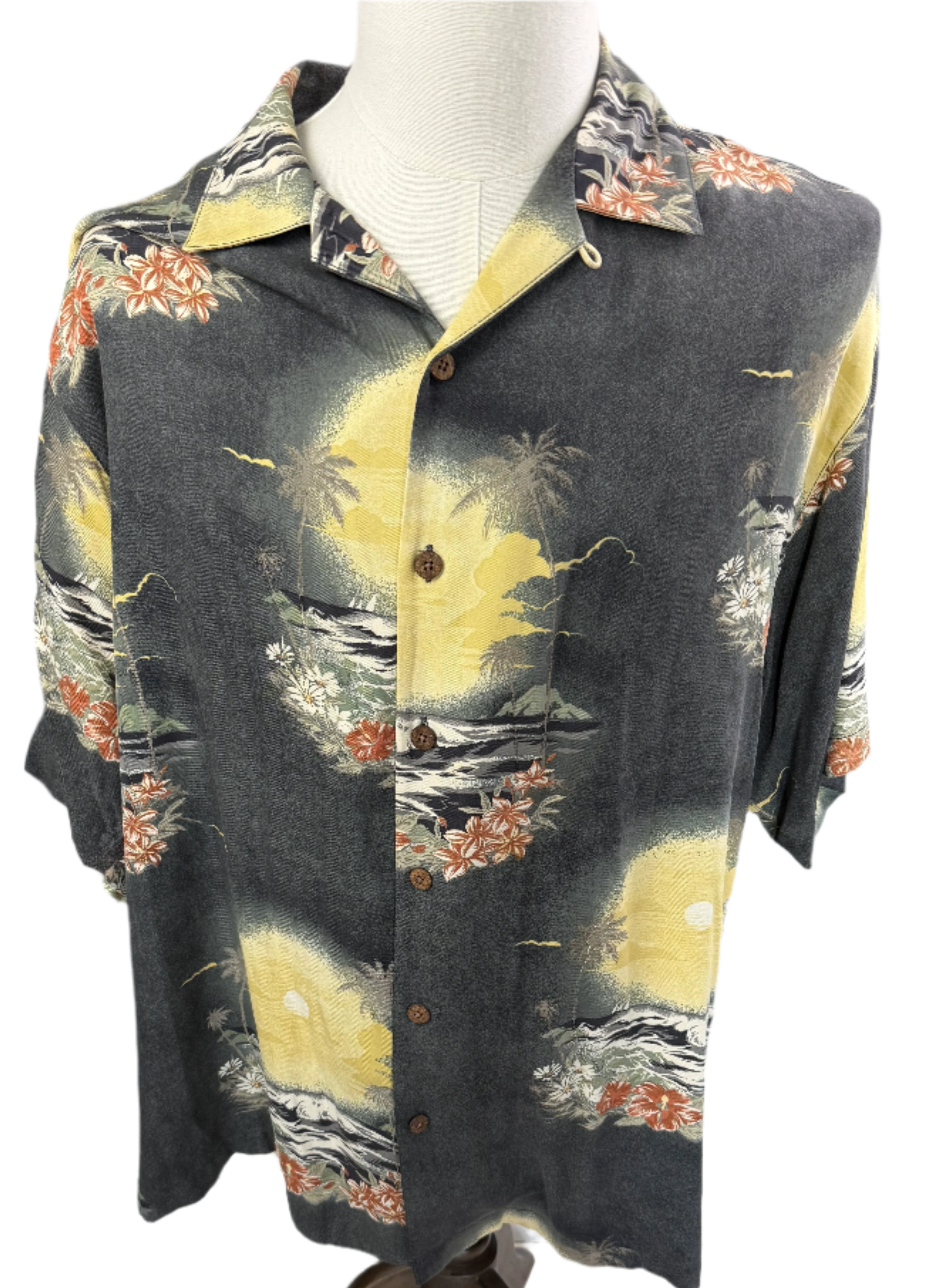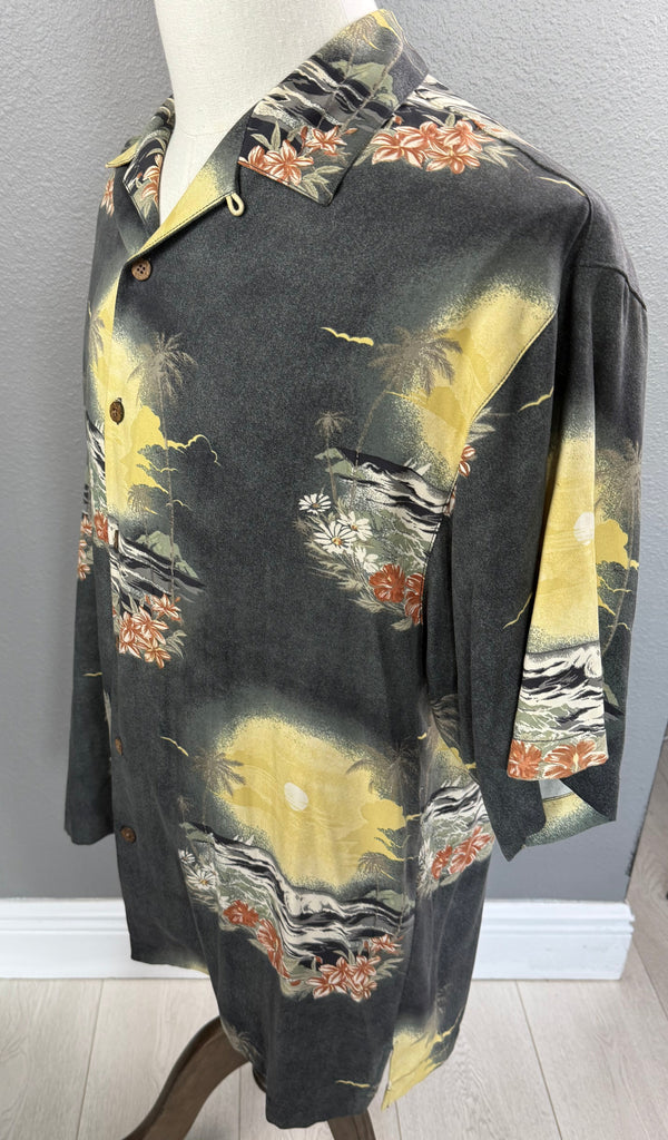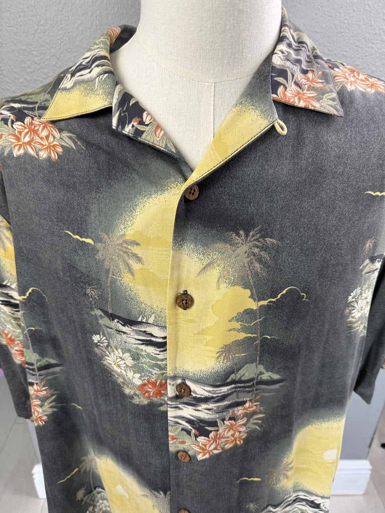Tommy Bahama 100% Silk Hawaiian Short Sleeve VINTAGE Mens Shirt Large*