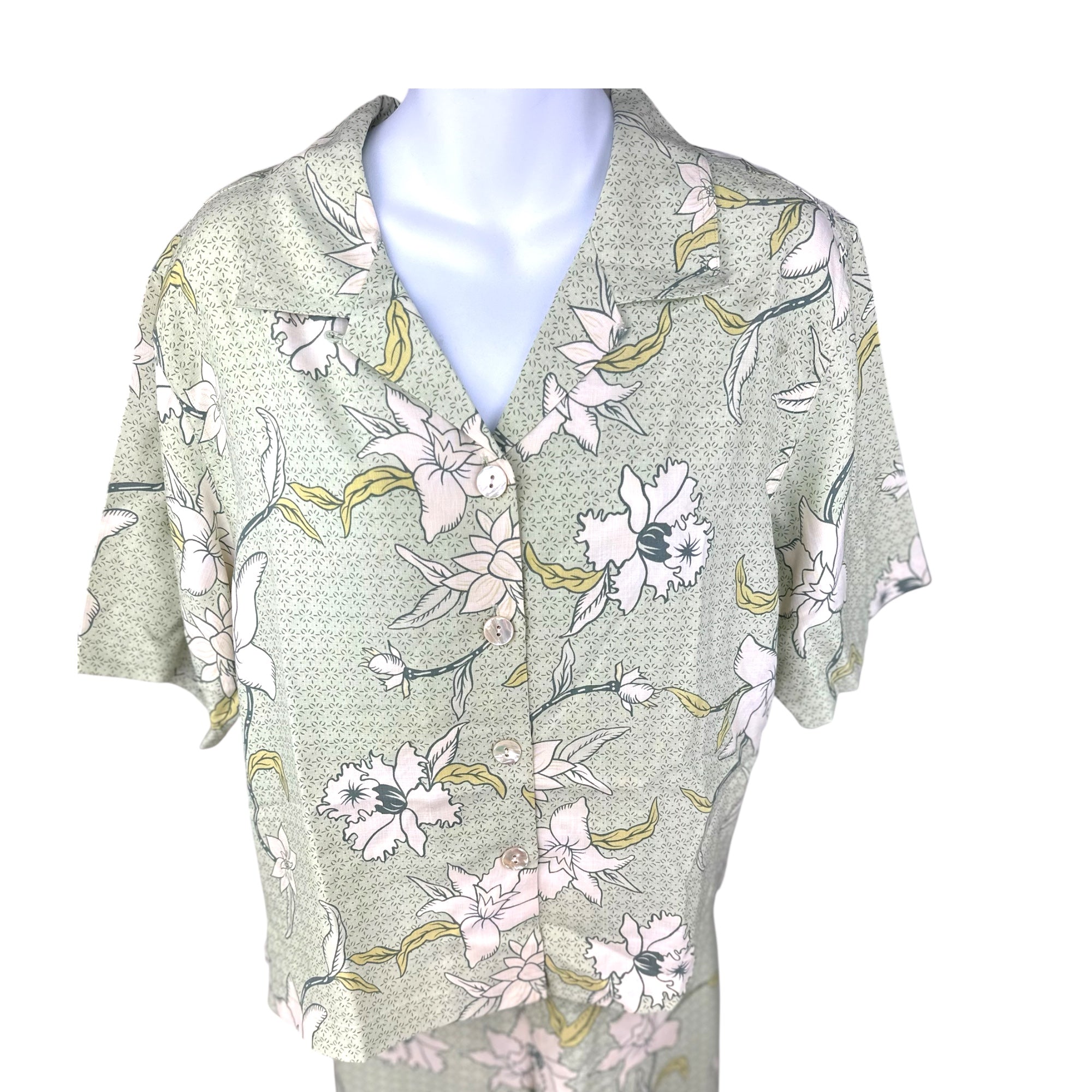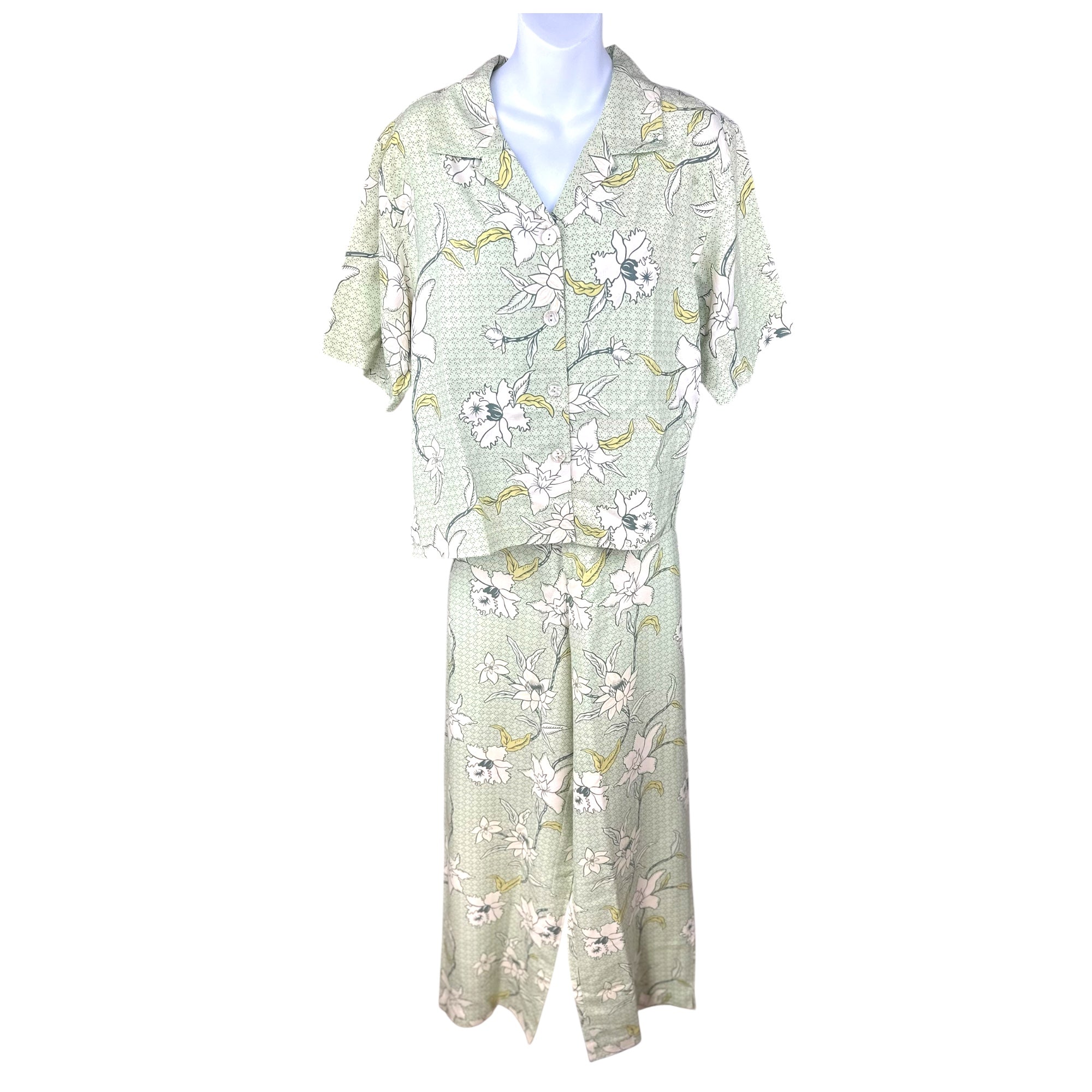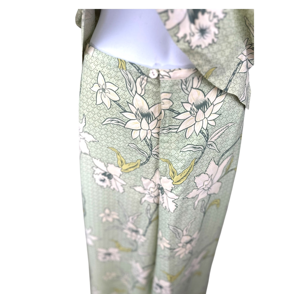 Tommy Bahama Green Floral Silk Vintage Shirt & Pants 2 Piece Set Medium*