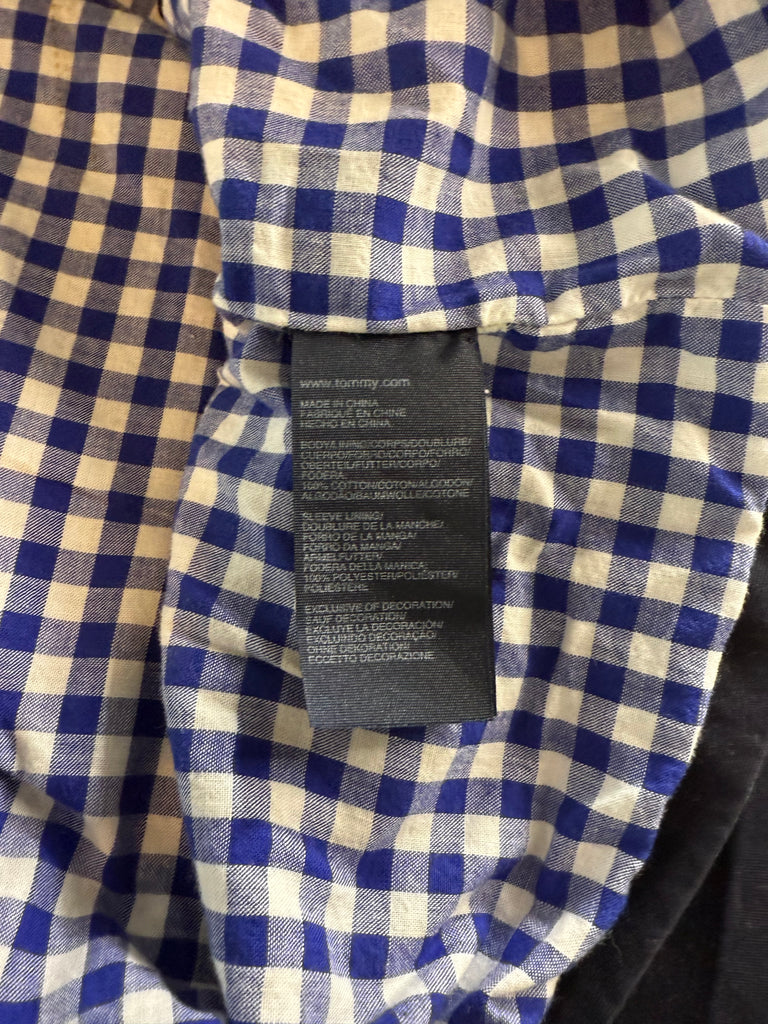 Crafted from high-quality cotton, this Tommy Hilfiger navy nautical jacket features a checkered lining that adds classic style and comfort. The zip and toggle closure system offers secure fastening and easy adjustment, making it an ideal choice for unpredictable weather. Designed specifically for women and available in XXL, this hooded jacket combines functional details with a timeless nautical aesthetic.