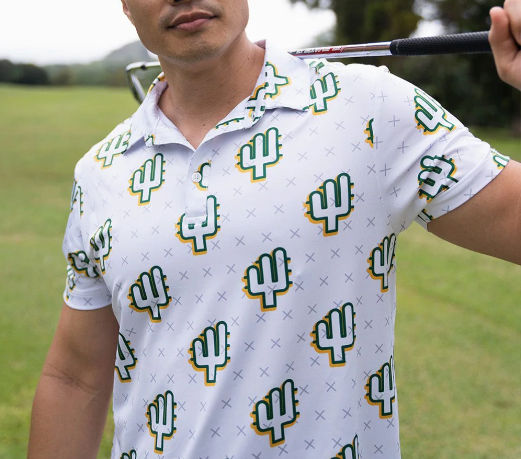 Yatta Golf Coral Cactus Polo Shirt Mens
